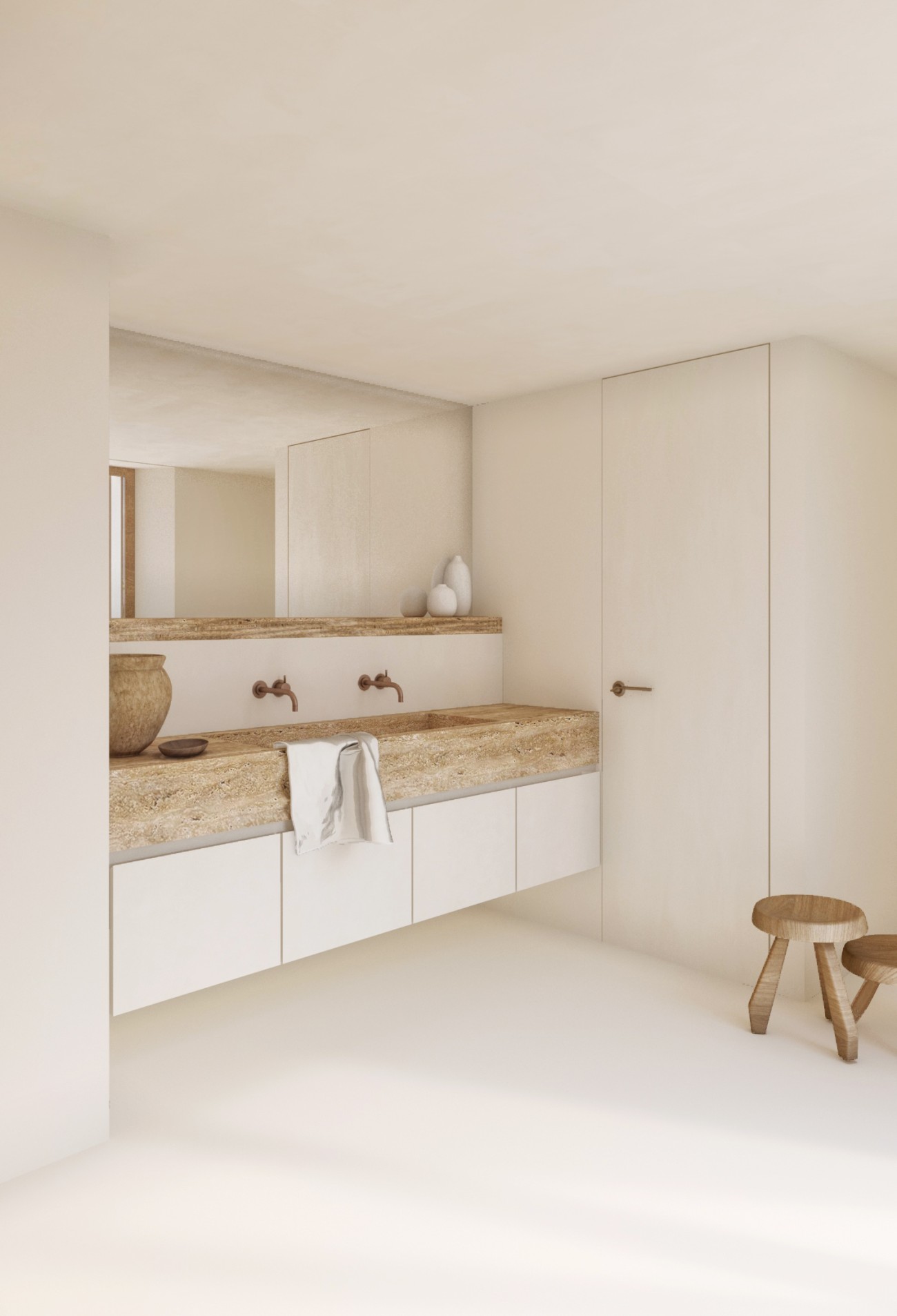 Boven zijn er drie slaapkamers met eigen badkamer, waaronder een luxe master suite met een groot privéterras, terwijl een andere slaapkamer ook een eigen toegang tot het terras heeft.