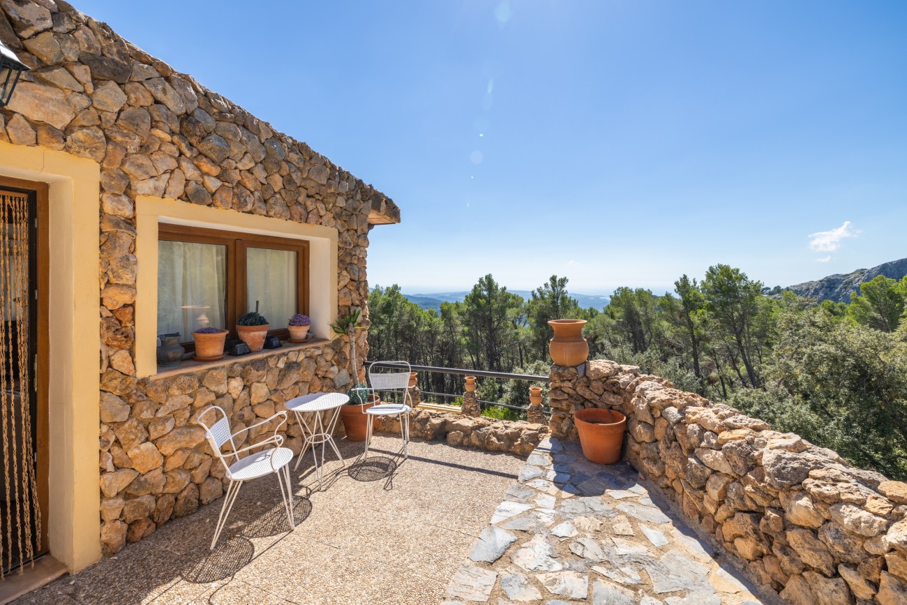 Dit charmante huis met stenen gevel ligt op een afgelegen verhoogde locatie in het berggebied van Galatzo en biedt een fantastisch uitzicht op het platteland, de bergen en de kustlijn. Het rustieke interieur complimenteert de buitenkant en bestaat uit een open woon-eetkamer met stenen muren en erkers van waaruit genoten kan worden van het spectaculaire uitzicht. Er is een rustieke keuken op hetzelfde niveau. De hoofdslaapkamer met badkamer ensuite ligt op de benedenverdieping en heeft directe toegang tot de overdekte veranda en het zwembad. Er is ook een gastenslaapkamer op de bovenste verdieping van het huis met een eigen terras.