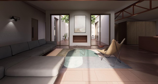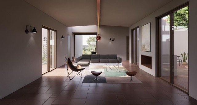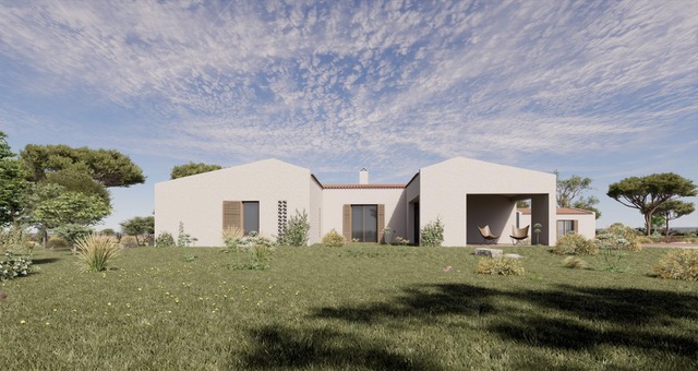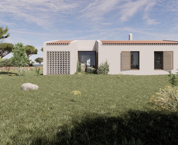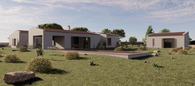 Het geplande gelijkvloerse huis beslaat 357 m² en combineert modern comfort met traditioneel Mallorcaans design. Georganiseerd rond een centrale patio, maximaliseert de lay-out het licht en de doorstroming tussen binnen- en buitenruimtes. Het project omvat drie slaapkamers met eigen badkamer, een open woon-eetkeuken van 93 m², een rustige binnenplaats met een boom en een fontein, en een privézwembad. Een zonne-energiesysteem zorgt voor duurzaamheid en bijna volledige zelfvoorziening.