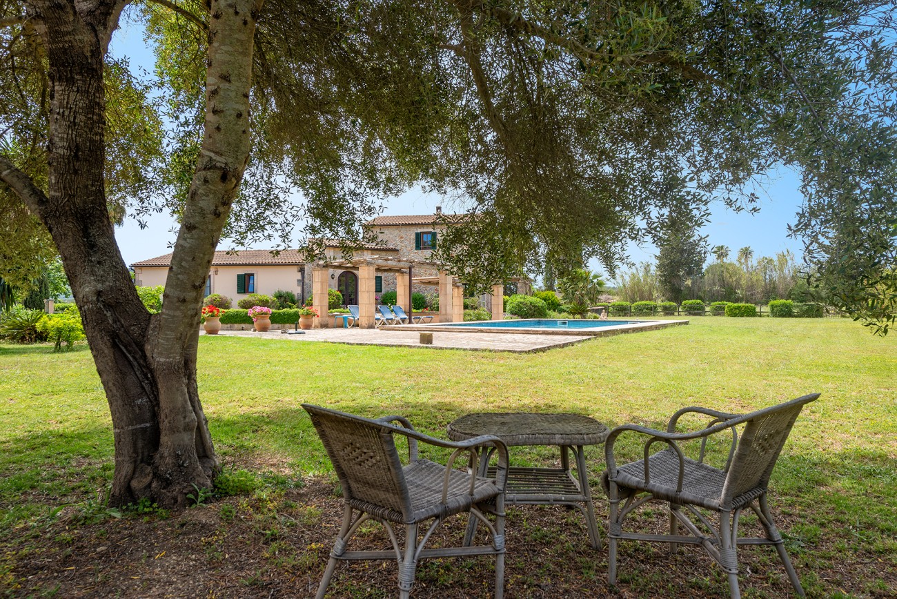 De buitenruimte biedt terrassen en pittoreske tuinen die het pand omringen, evenals een privézwembad en ligweide.