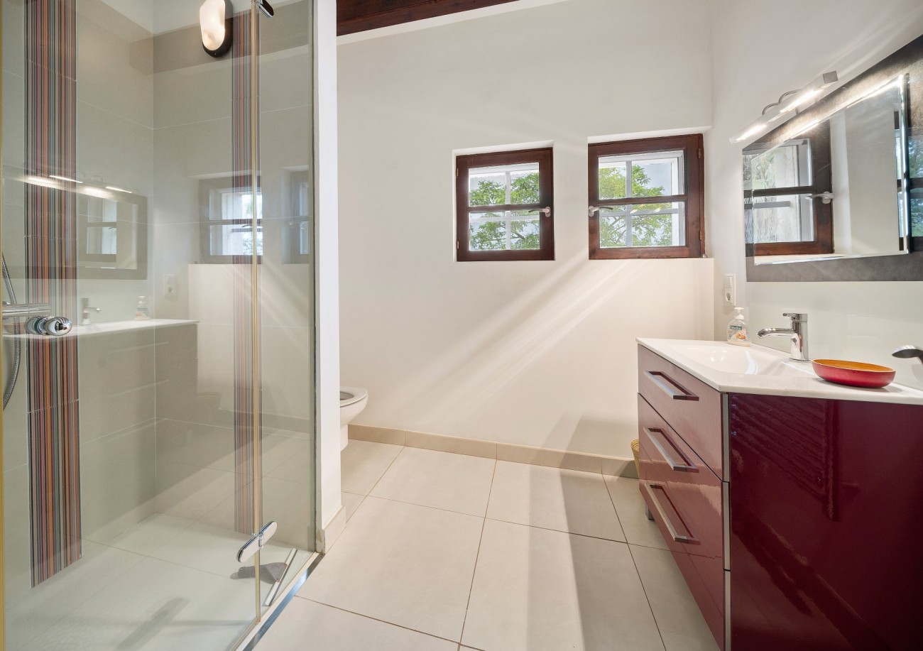 Op de bovenverdieping zijn er drie extra slaapkamers en twee badkamers, waardoor er voldoende ruimte is voor familie en gasten.