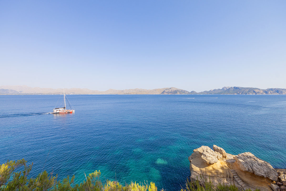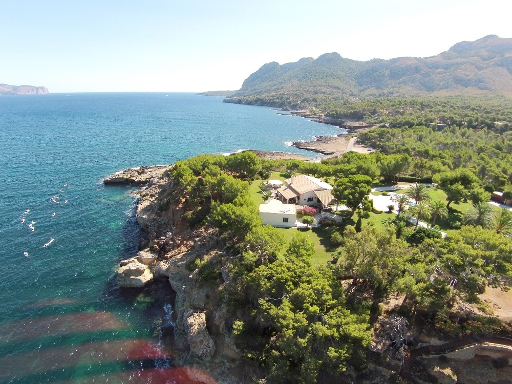 Sensationeel afgelegen huis aan zee met directe toegang tot de baai van Pollensa op een bijzonder privélocatie!