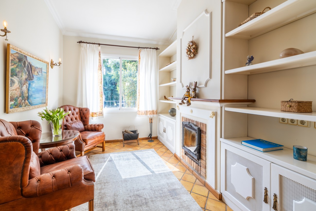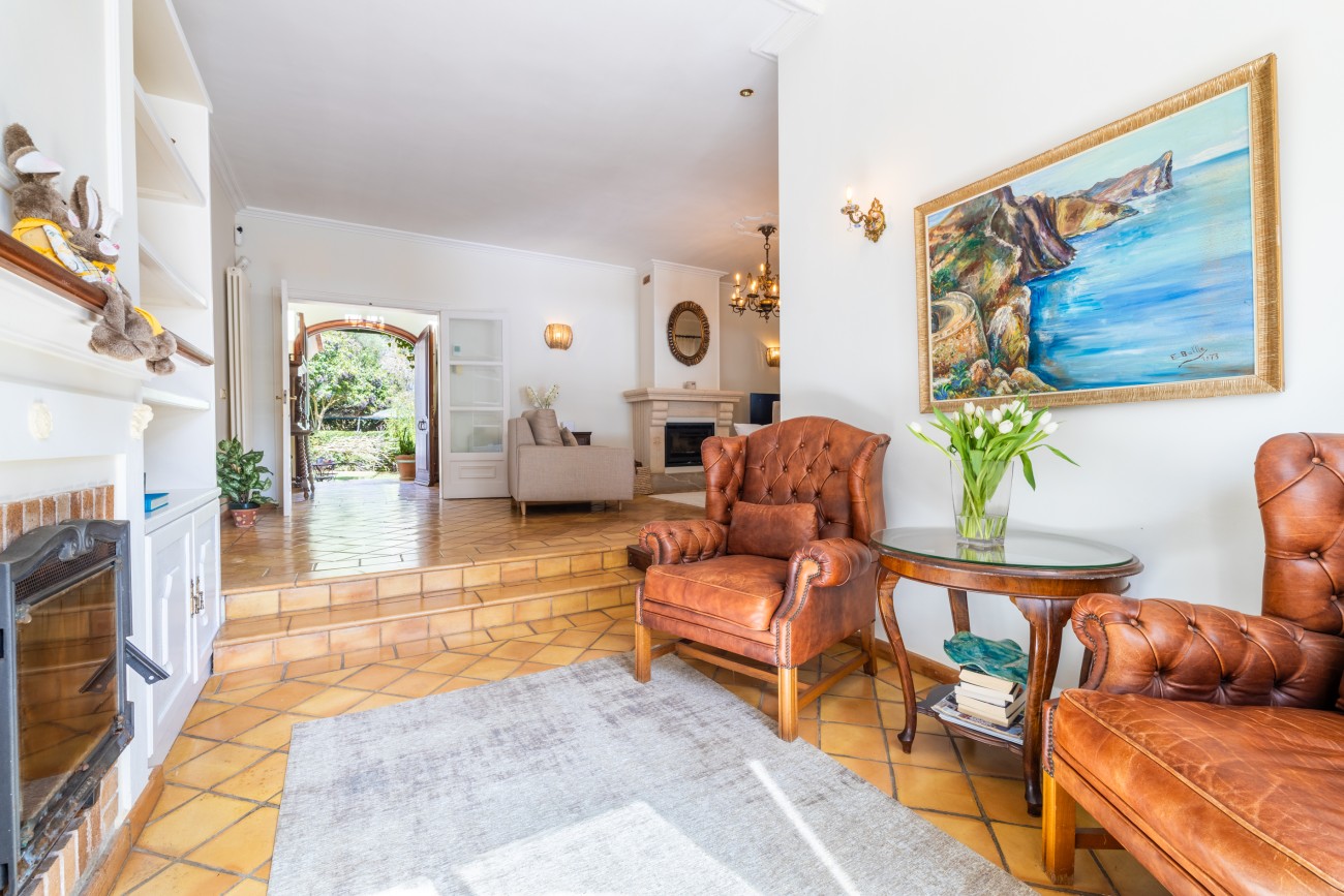 Binnen vind je een ruime woonkamer met comfortabele banken, fauteuils en verschillende zithoeken, waaronder een gezellige hoek met een eigen open haard, waar je lekker met een boek kunt zitten. Er is een keuken met ontbijthoek, volledig uitgerust en een gastenverblijf met eigen woonkamer, kitchenette, open haard en AC, hoge houten balkenplafonds,