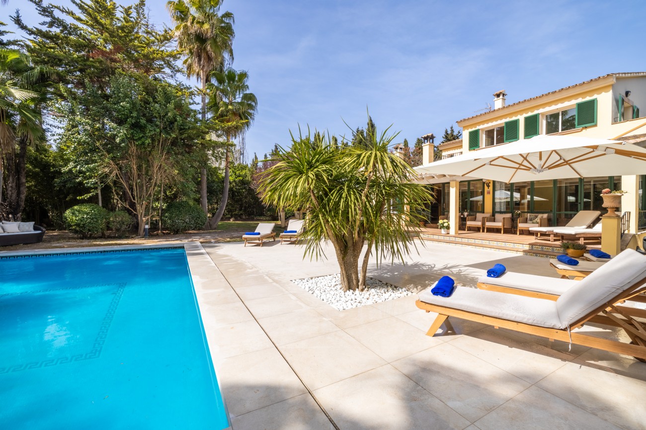 Het heeft vijf slaapkamers, vier badkamers, een fantastisch zwembad, schilderachtige tuinen en een geweldige locatie aan de rand van Santa Maria, op loopafstand van de plaatselijke winkels, bars en restaurants.