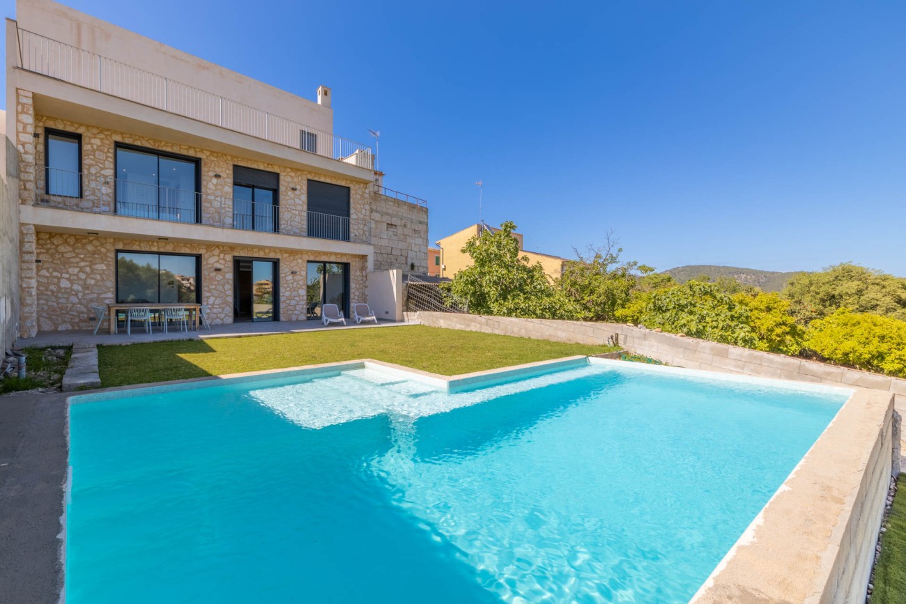 Dit uitzonderlijke, eigentijdse dorpshuis wordt te koop aangeboden aan het einde van een rustige doodlopende straat in het pittoreske dorpje Campanet. Het heeft lichte, ruime kamers met airconditioning en vloerverwarming, een privégarage, royale terrassen en een mooi aangelegde tuin met zwembad en fantastisch uitzicht.
