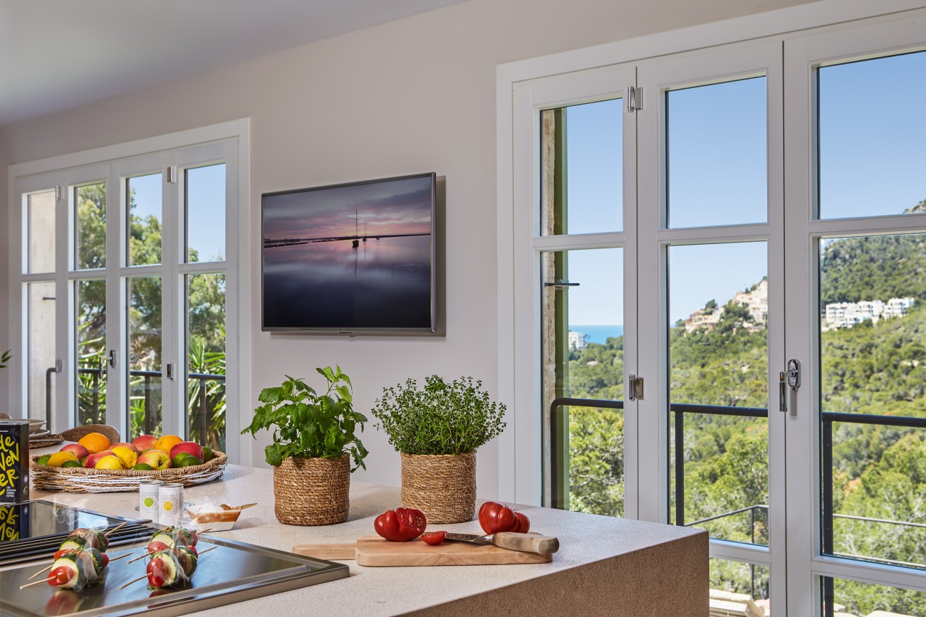 Set on a generous elevated plot of approximately 1,450 m², the property offers breathtaking views of the sparkling Mediterranean Sea and the mountains of the Serra de Tramuntana. Here, nature, privacy, and Mediterranean architecture blend seamlessly.