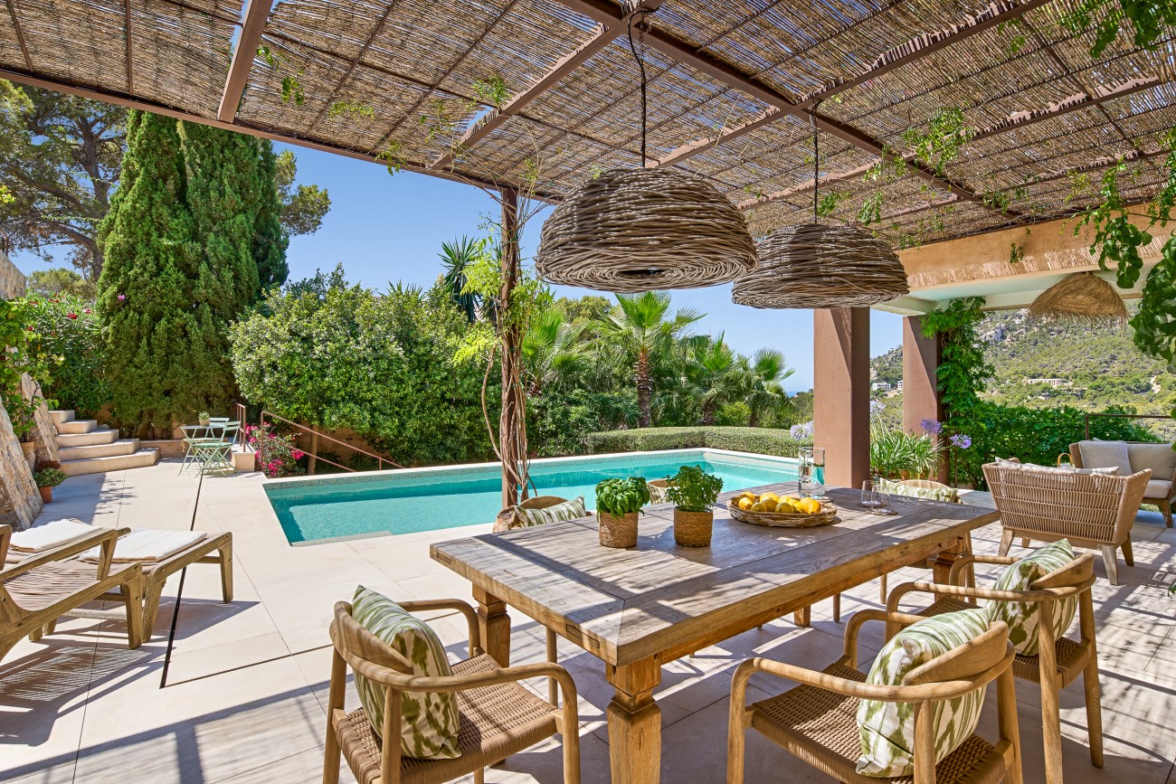 This enchanting villa rises above the exclusive harbor of Puerto de Andratx, combining timeless elegance with modern living comfort.