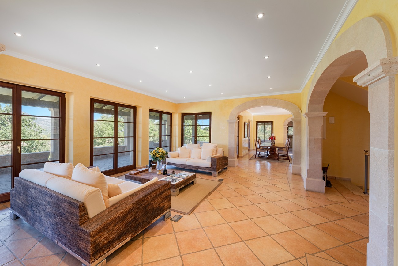 Dit prachtige luxe huis beslaat een perceel van ongeveer 17.535m2 en wordt te koop aangeboden in een van de meest opvallende gebieden in het noorden van Mallorca, de Puig de Santa Magdalena, vlakbij Inca.