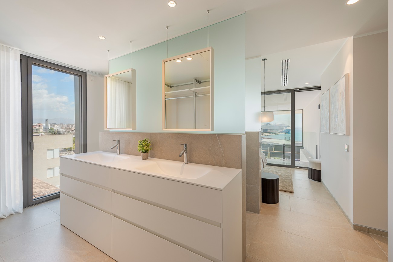 Verder biedt het complex een grote ondergrondse parkeergarage verdeeld over 3 verdiepingen met diverse parkeerplaatsen. Door de grote ramen genieten alle appartementen van veel natuurlijk licht. Elk appartement heeft een eigen ruim terras. De appartementen hebben een uitstekend uitzicht op zee en de haven, maar ook een romantisch uitzicht op Palma en de beroemde kathedraal.