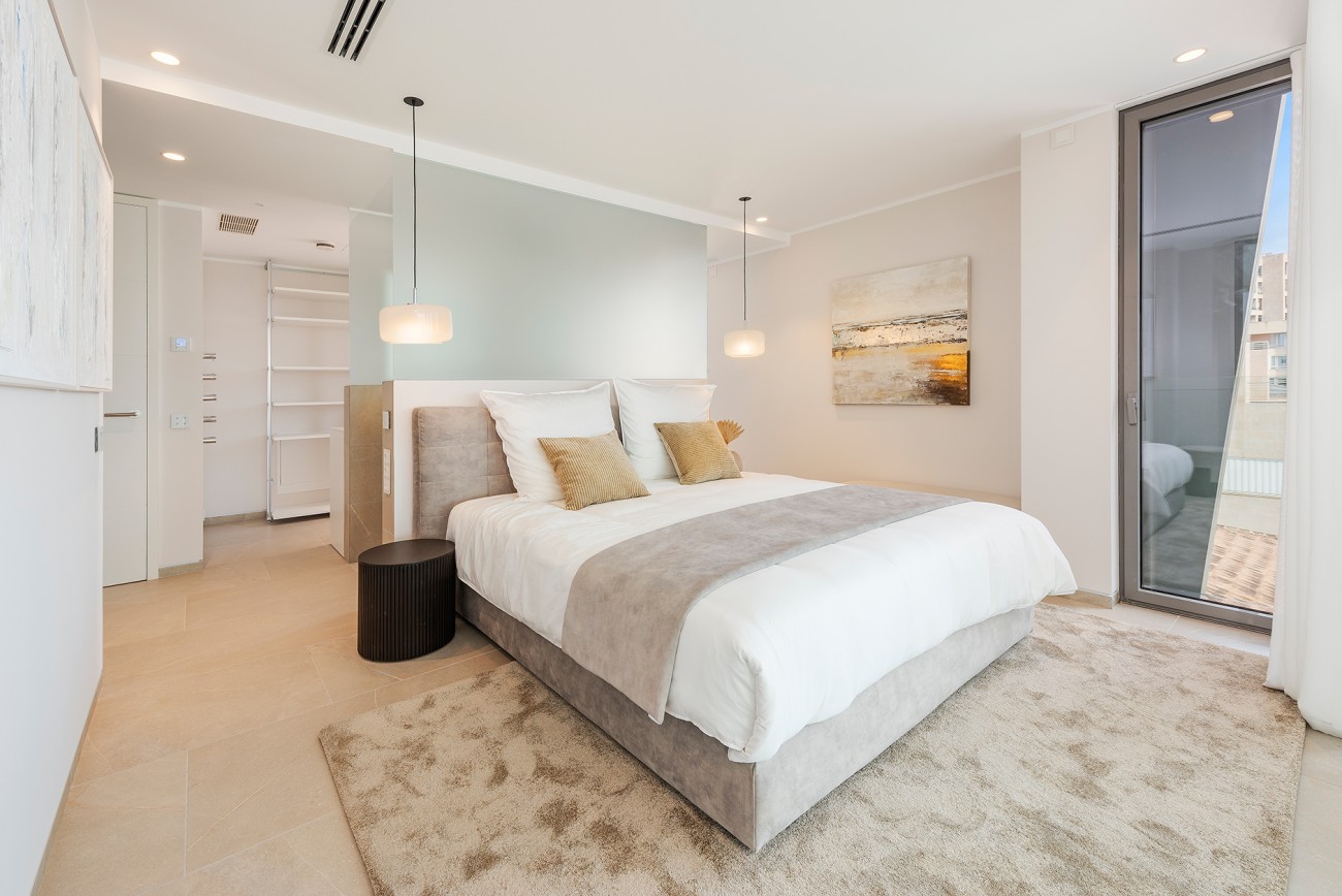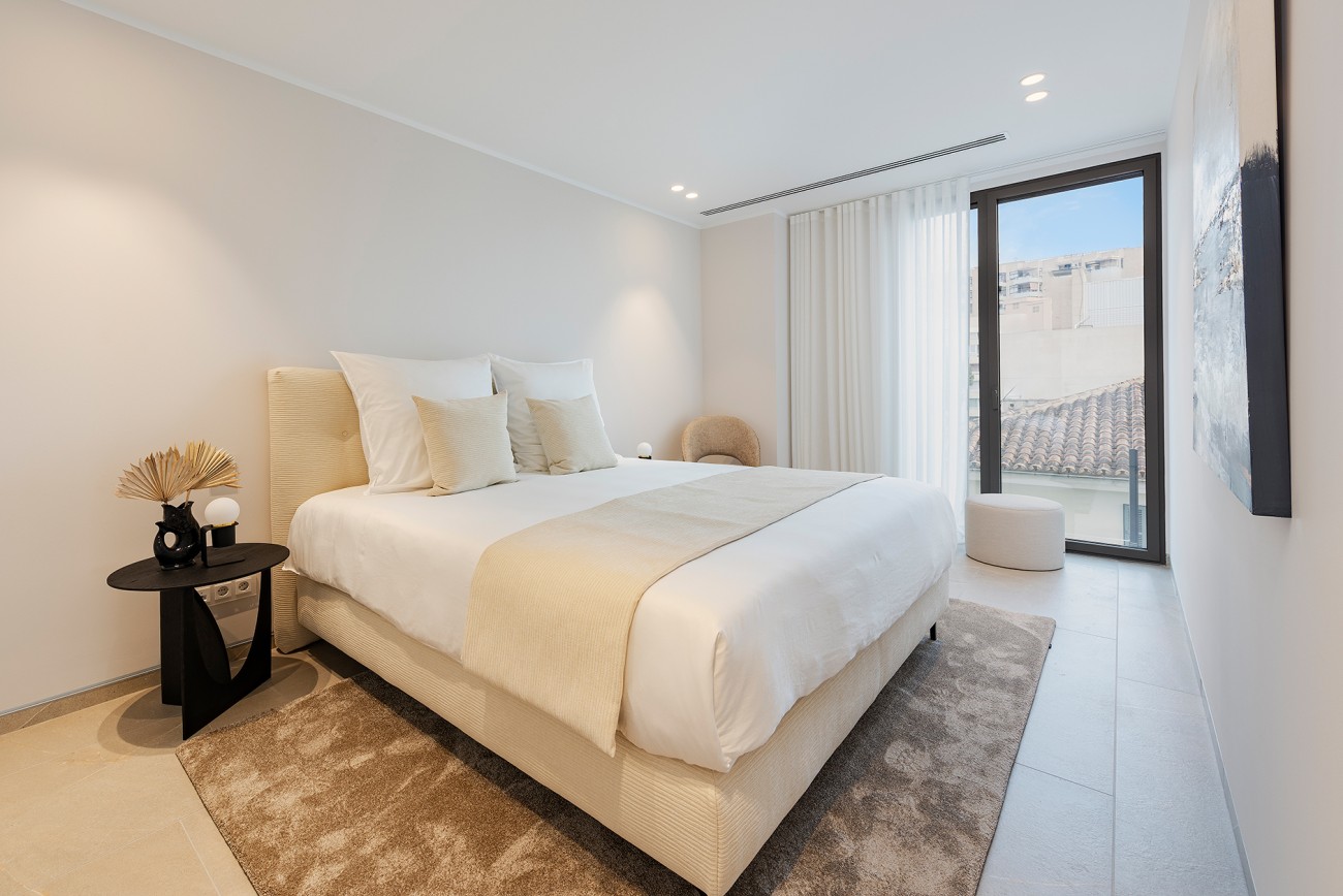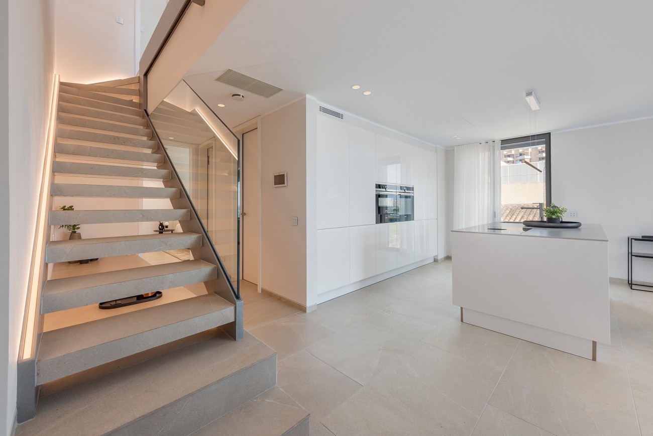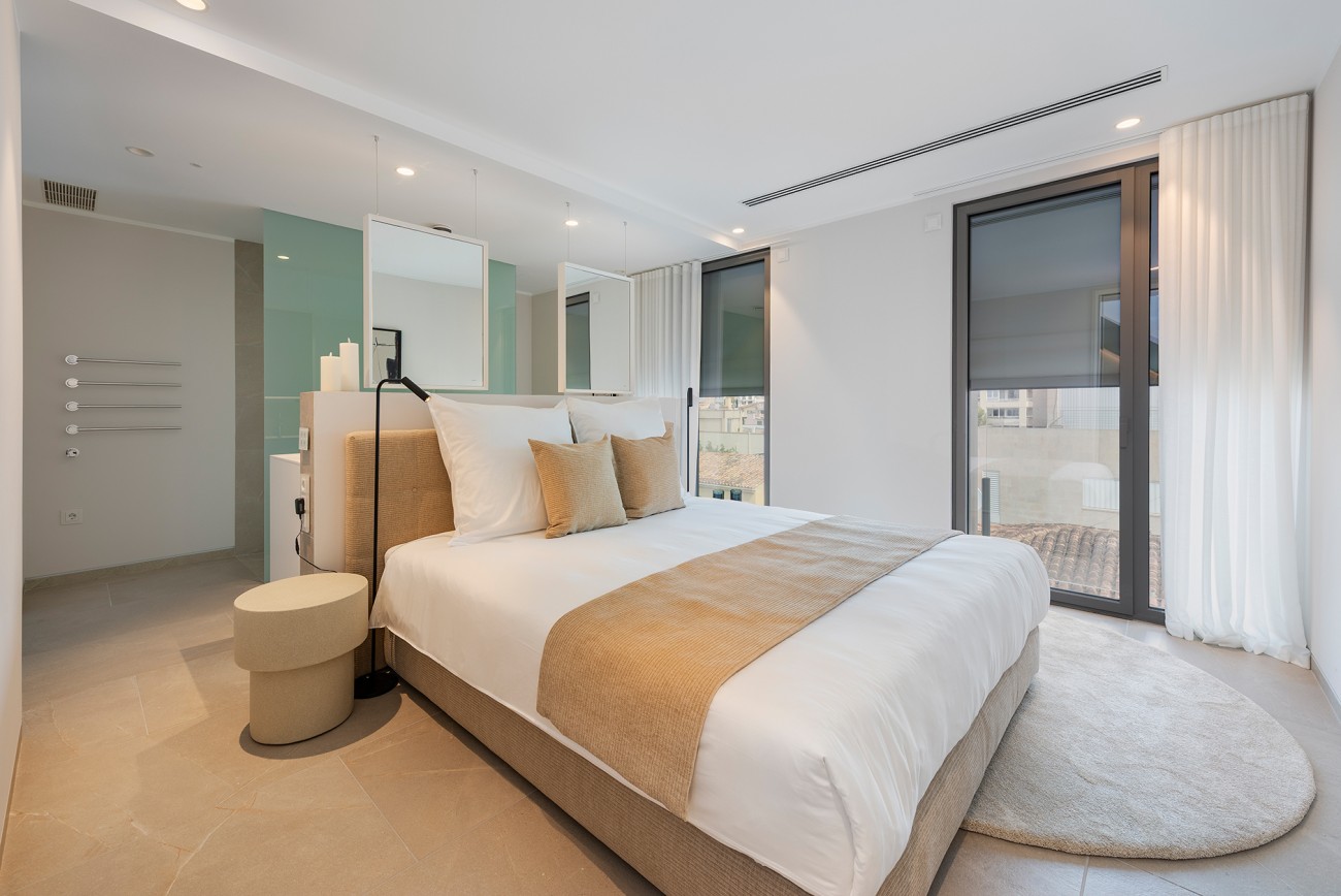 Dit project zet een nieuwe standaard op de luxe vastgoedmarkt in de hoofdstad van Mallorca dankzij het speciale ontwerp en de geselecteerde materialen. De asymmetrische vorm van het gebouw wordt gekenmerkt door een hoogwaardige glazen gevel en een speciale stenen bekleding. De structuur biedt elk appartement absolute privacy en de eigenaren een spectaculair uitzicht door de ramen van vloer tot plafond. De basisuitrusting van elk appartement bestaat uit een eigen terras, een garage, een hoogwaardige designkeuken, ingebouwde kasten, vloerverwarming, airconditioning h/c, een domoticasysteem en nog veel meer.