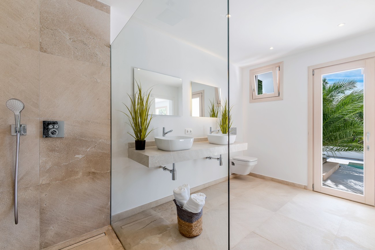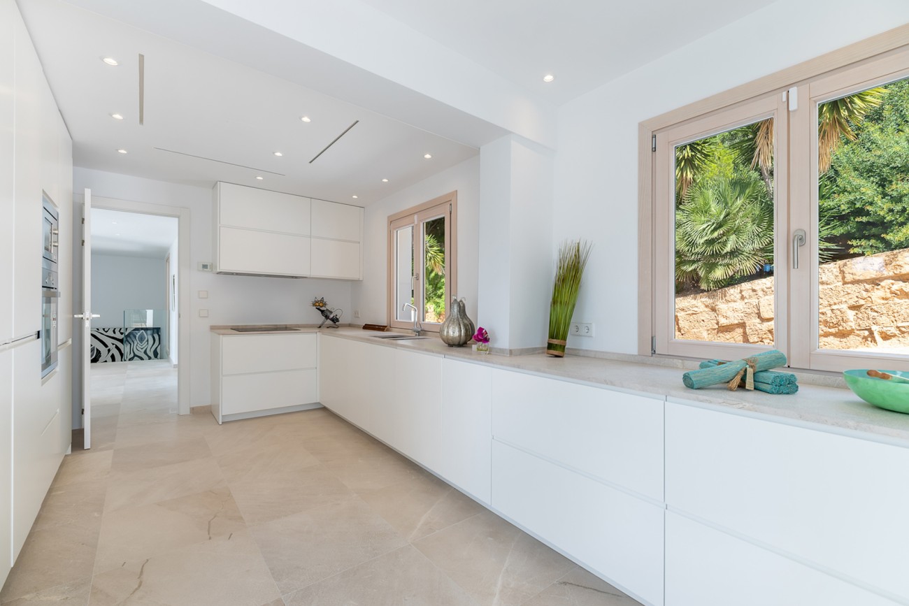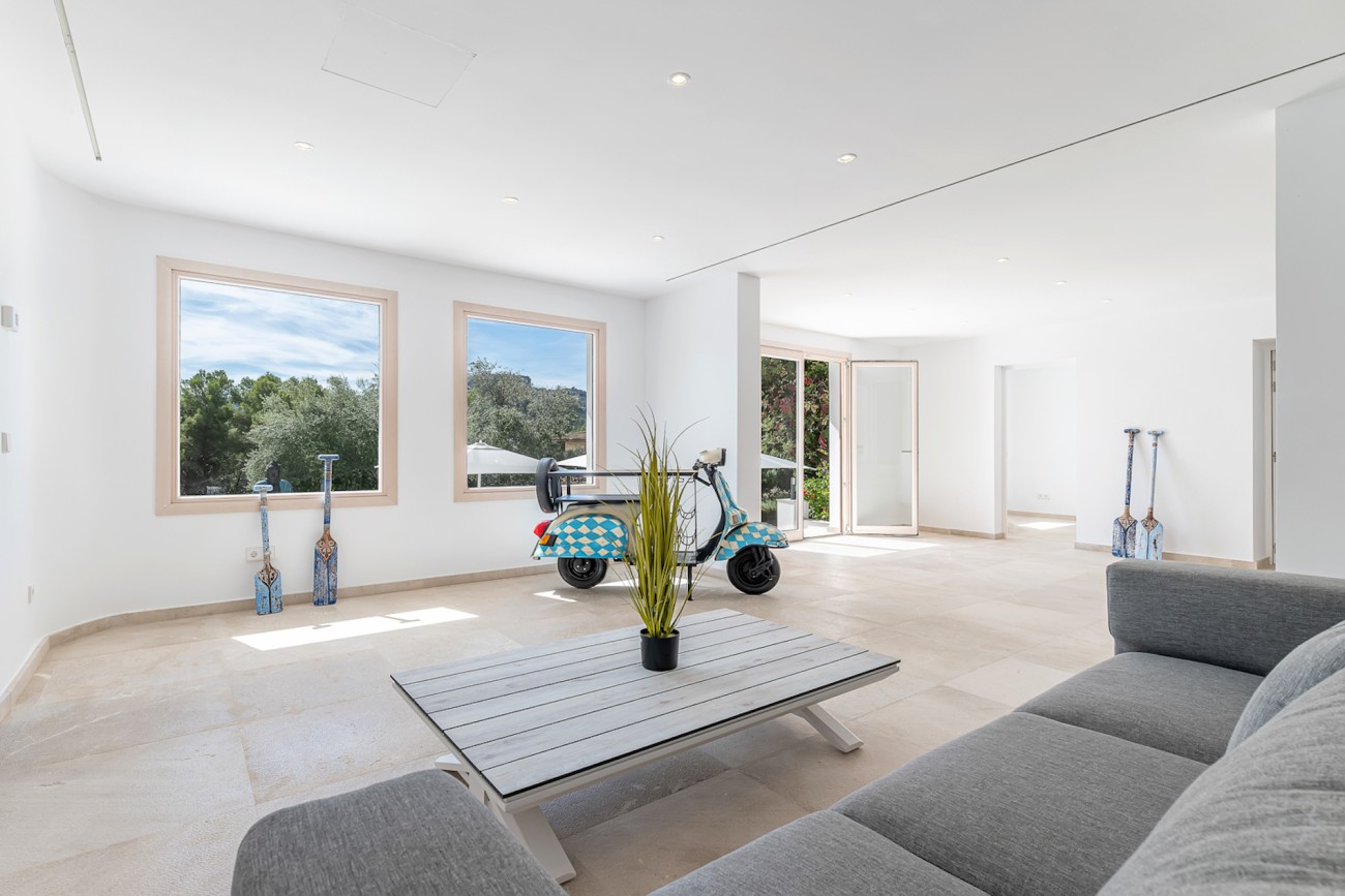 Deze opmerkelijke villa geeft opnieuw vorm aan de mediterrane charme met zijn verfijnde ontwerp en superieure afwerking. Het pand van 537 m2 ligt op een perceel van 1.854 m2 en biedt een prachtig uitzicht op de zee, de golfbaan en de majestueuze bergen, terwijl het veel privacy en buitenruimte biedt, gelegen naast de prestigieuze Son Vida golfbaan.