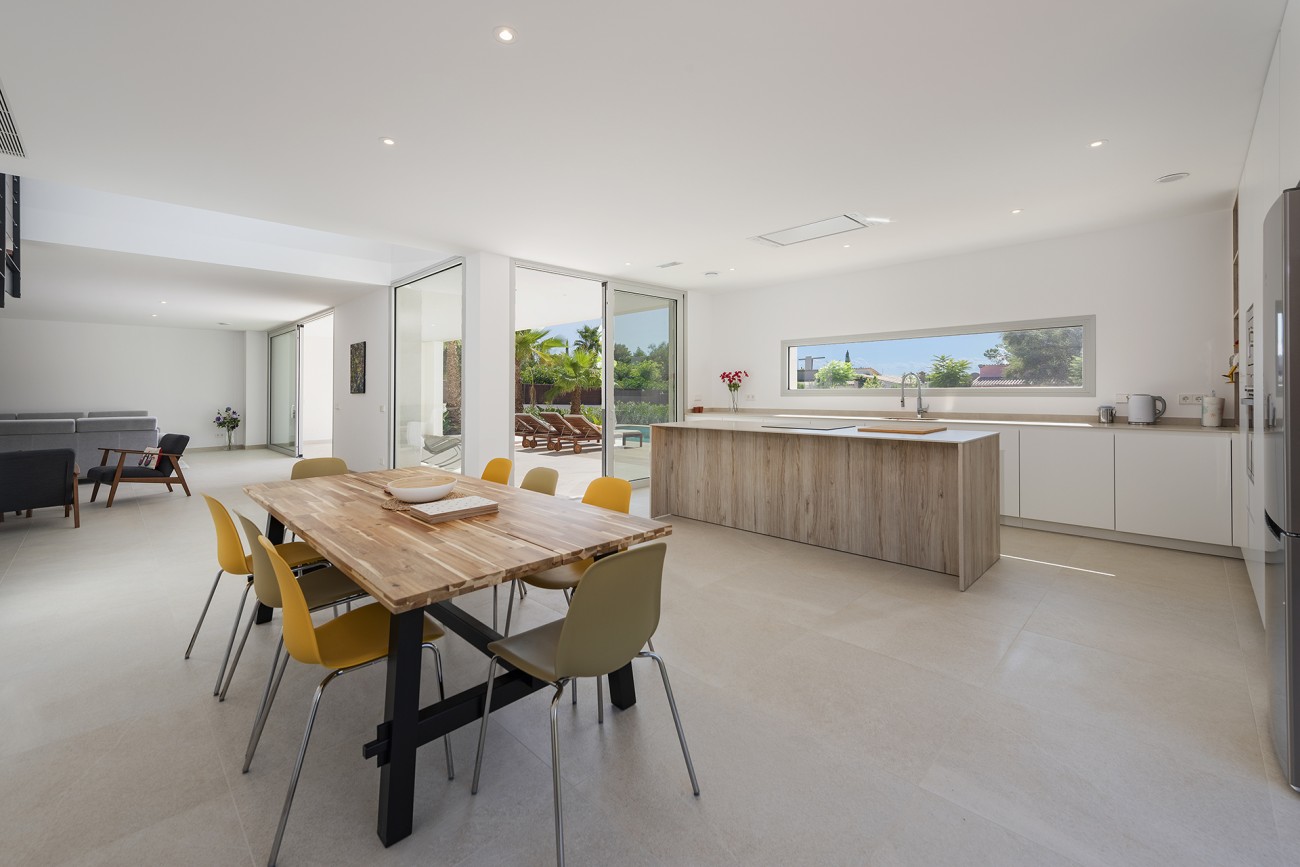 De afgewerkte villa biedt 4 slaapkamers, 3 badkamers (waarvan 2 en suite), een moderne open woon-/eetkamer en woonkamer en een ruim, overdekt terras!