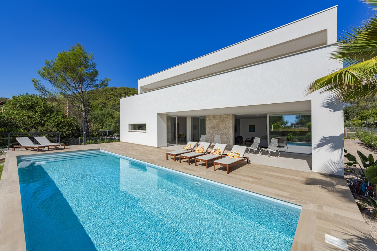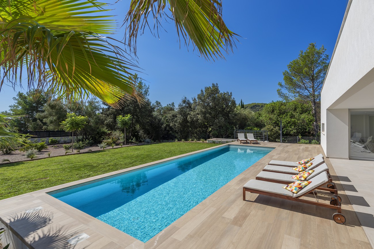 NIEUWBOUWDE luxe villa te koop in de beste urbanisatie van Pollensa. Dit is een rustige, altijd groene locatie met de prestigieuze internationale privéschool MySchool bij de ingang. Het is slechts ongeveer 7 minuten met de auto naar Pollensa.