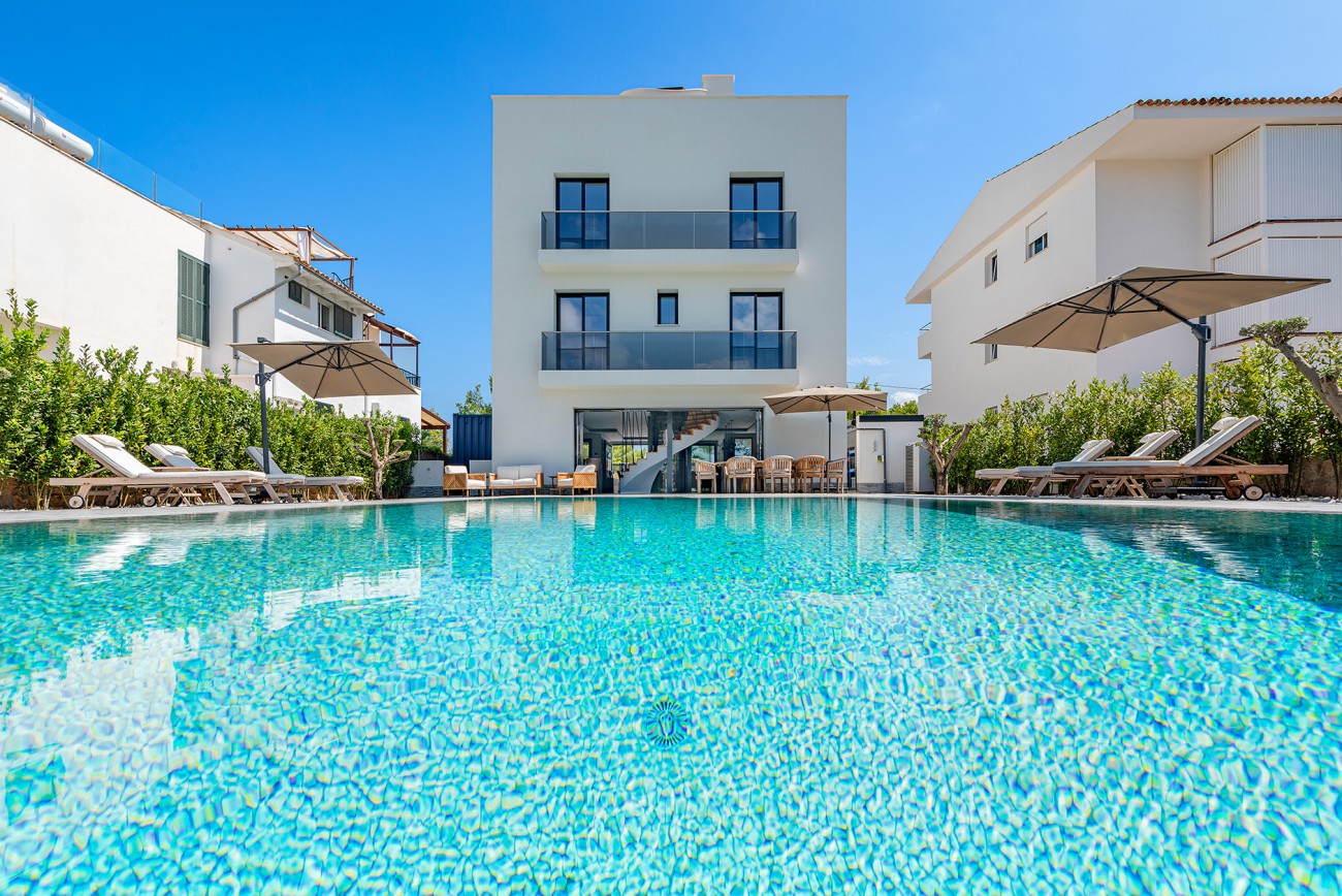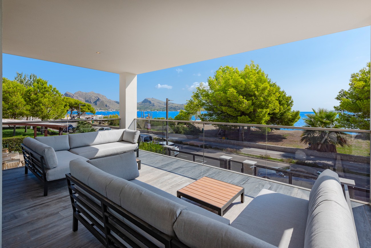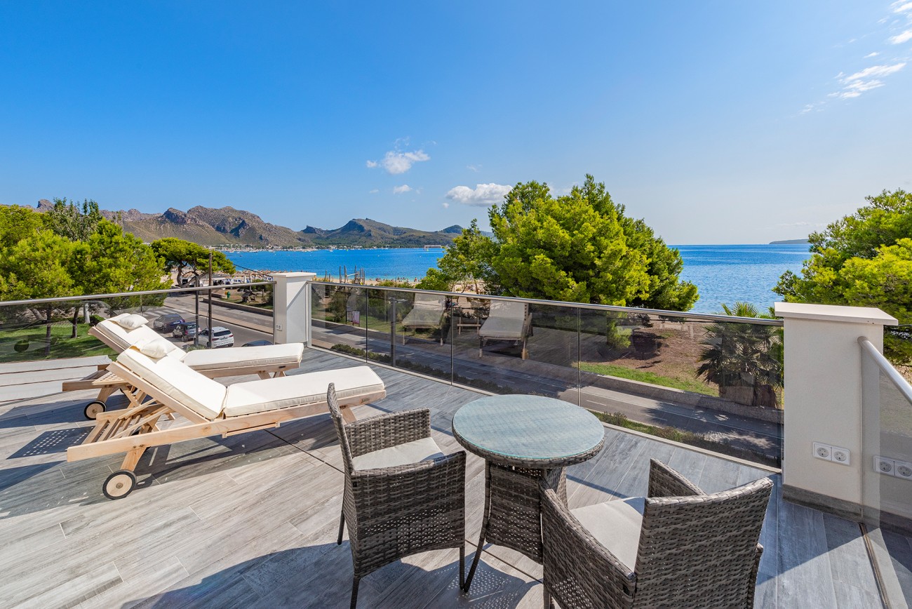 Deze prachtige luxe villa is te koop in Puerto Pollensa, in de populaire wijk Llenaire, direct aan het strand met prachtig uitzicht op zee. Het heeft een prachtige tuin, een groot privézwembad en een strak minimalistisch ontwerp dat past bij een luxe mediterrane levensstijl.