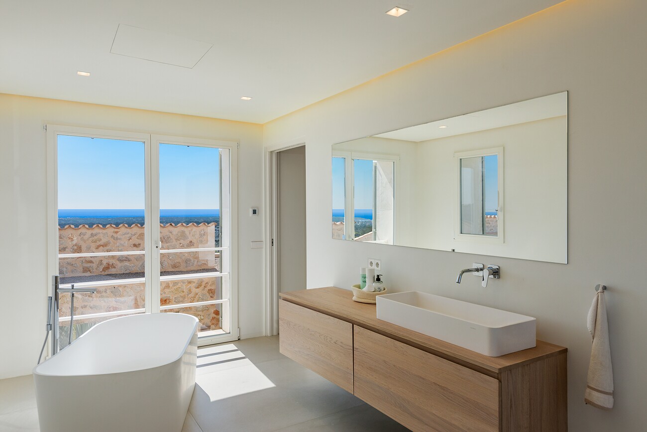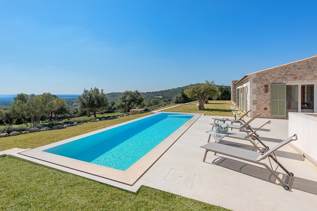This unique luxury property is situated on a plot of over 14,000 m² in the middle of a beautiful, natural hilly landscape near Sant Llorenç with a magnificent sea view. In an