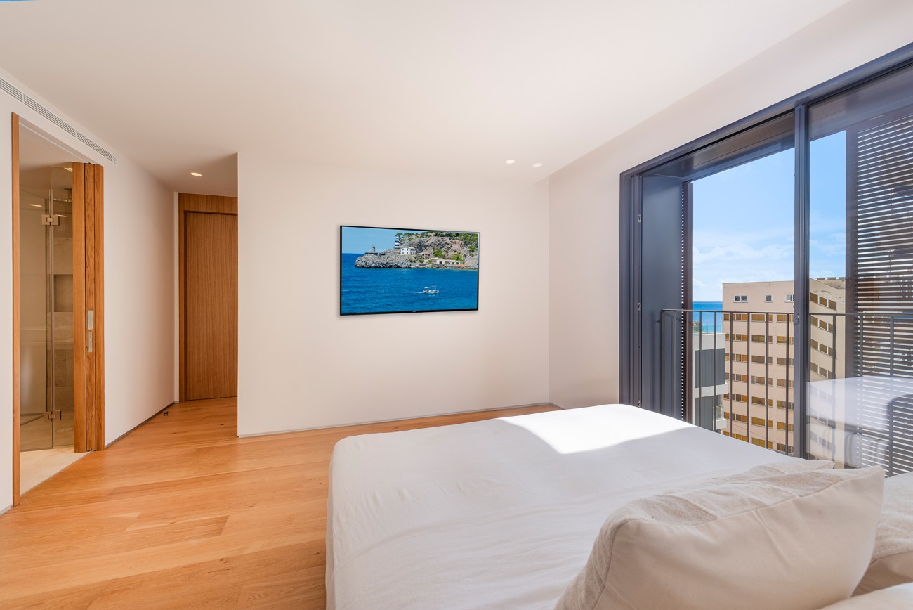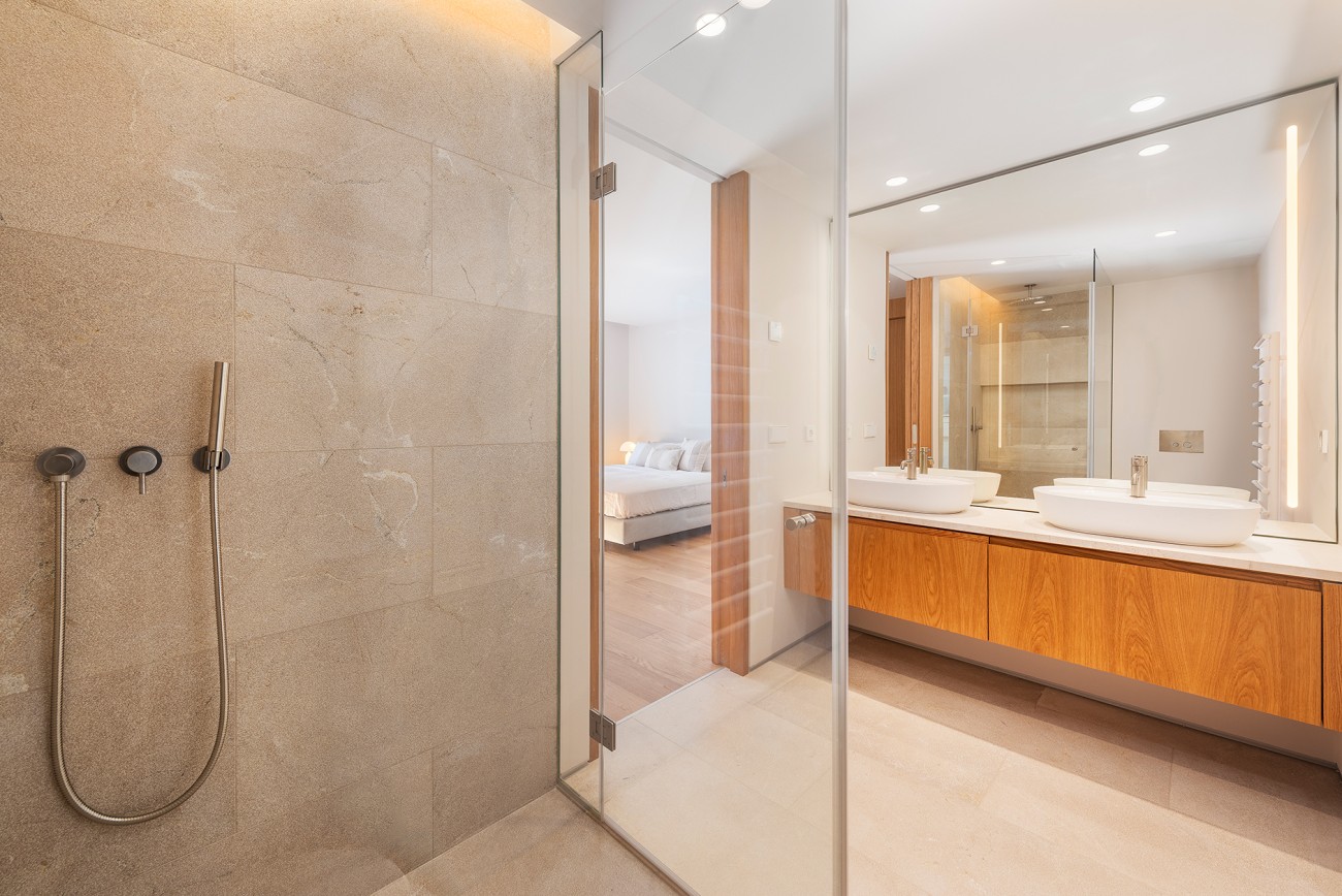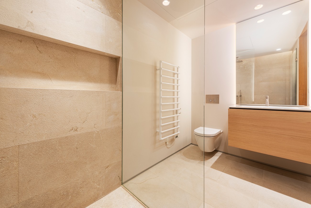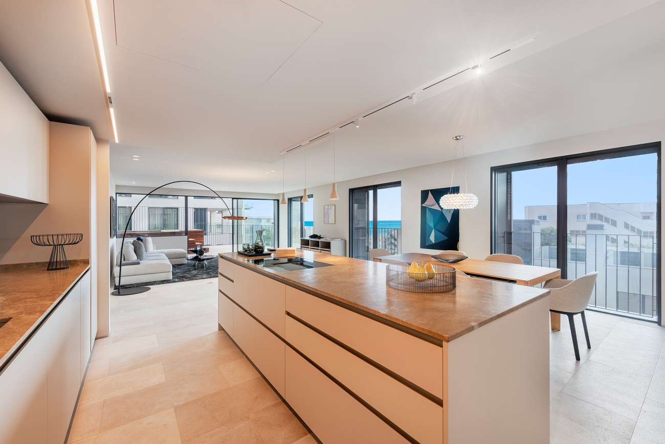 Dit appartement is verdeeld over de gehele tweede verdieping en beschikt over een privéterras van 33 m2 met een dompelbad van 7 m2. Het heeft een grote woon/eetkamer van 59 m² met open keuken, drie slaapkamers, drie badkamers (waarvan één en suite), gashaard en voor een aangename sfeer gedurende het hele jaar zijn airconditioning en vloerverwarming geïnstalleerd.