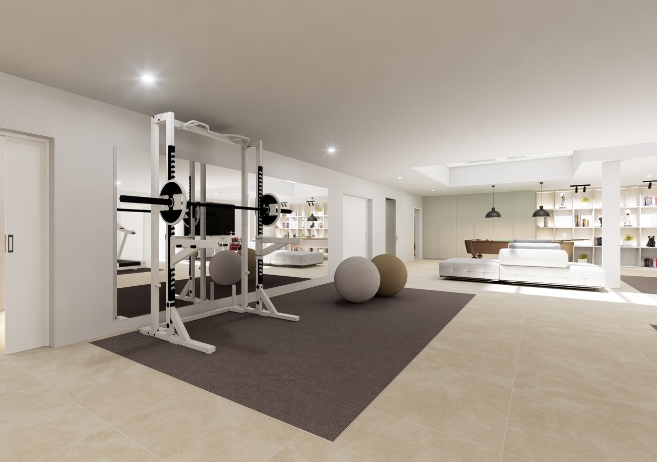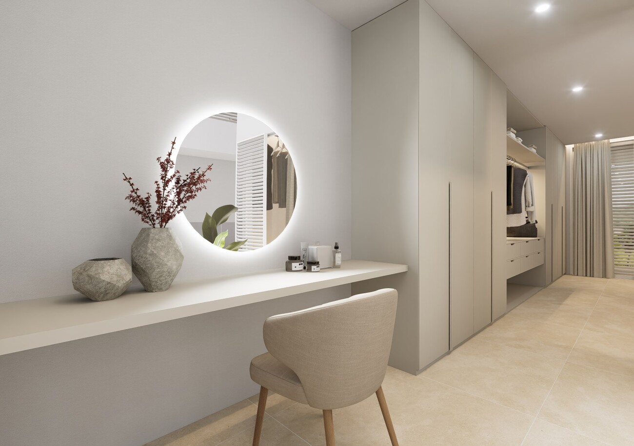 On the top floor is the roof terrace with panoramic views. All floors are connected by a staircase and a lift. The villas are fully air-conditioned with integrated air conditioning h/c and underfloor heating.
