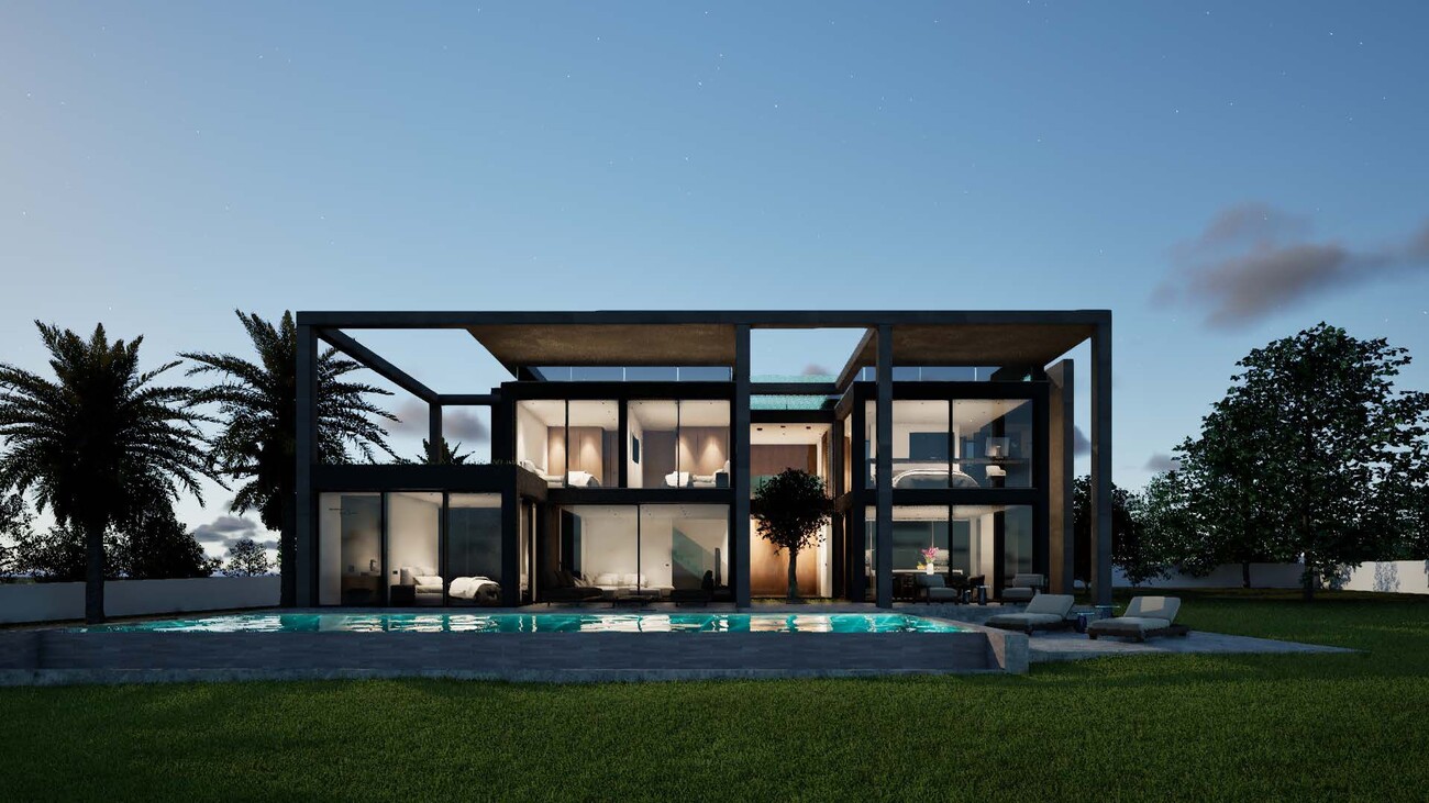 The villa will be distributed over two floors and feature four bedrooms, three bathrooms, and a guest toilet. Large floor-to-ceiling windows will provide abundant natural light, while high-quality materials, natural stone flooring, and aluminium double-glazed windows ensure both comfort and durability. The fully equipped kitchen, utility room, and dressing area add to the practical layout.