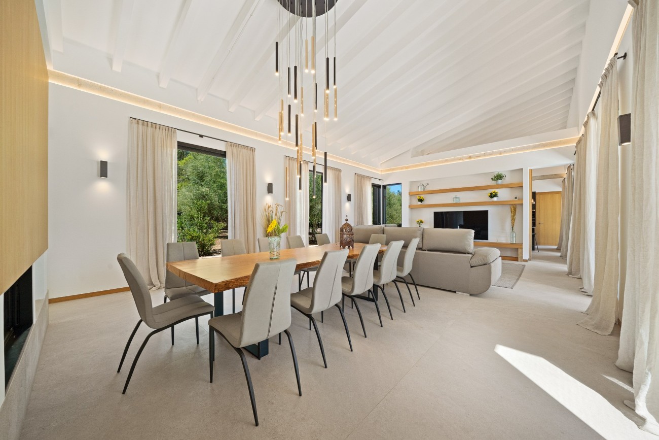 Het huis heeft vier ruime slaapkamers en vijf badkamers, samen met vier buitendouches. Er is een volledig uitgeruste hoofdkeuken met apparatuur van Bora en Balay, en een tweede keuken voor extra gemak. Er zijn overal hoogwaardige materialen gebruikt, waaronder porseleinen tegels van 1,50 x 1,50 m en aluminium ramen met dubbele beglazing. De woning is voorzien van zonne-energie en heeft vloerverwarming, airconditioning, een open haard en plafondventilatoren in alle slaapkamers. Extra voorzieningen zijn onder andere inloopkasten, zichtbare houten balken, een bergruimte en een volledig alarmsysteem.