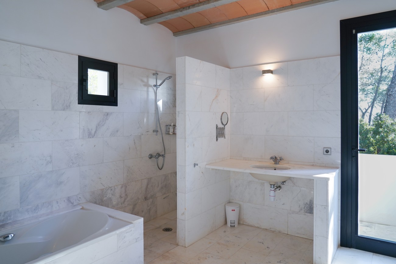 Buiten vormt het zwembad van 128 m² het middelpunt, omringd door olijfbomen en aangelegde tuinen. Het landgoed biedt volledige privacy en ruimte om extra tuinen of ontspanningsruimtes te ontwikkelen.