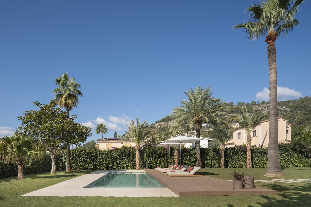 Boven beschikken de vijf royale slaapkamers elk over een eigen terras en en-suite badkamer voor comfort en privacy. De 70 m² grote master suite is een eigen heiligdom, compleet met een kleedkamer, leeshoek, gashaard en een adembenemend uitzicht op de Tramuntana bergen en de skyline van Palma.