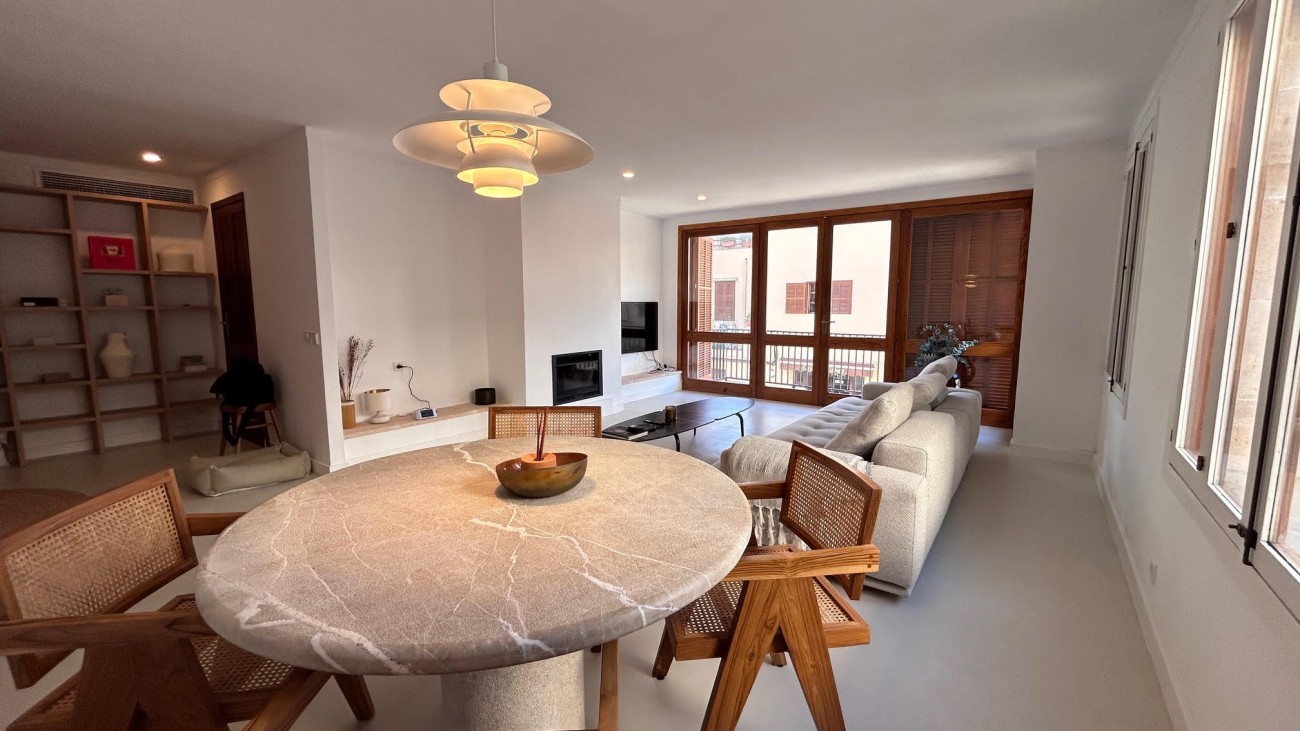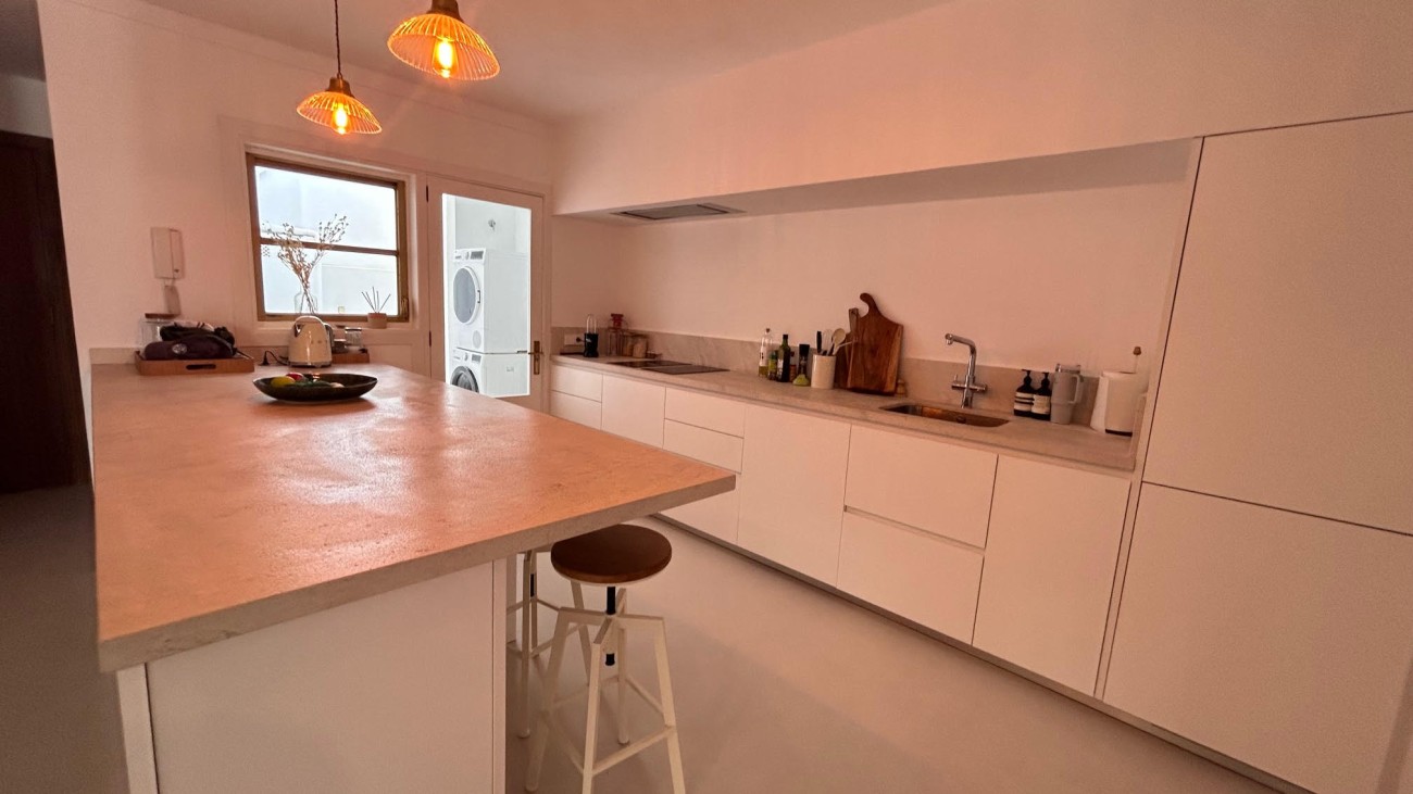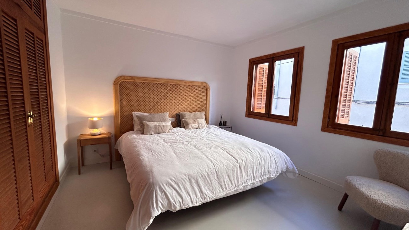 Dit moderne en gerenoveerde appartement ligt op een toplocatie, midden in het centrum van Pollença, met een balkon op het zuiden dat veel natuurlijk licht toelaat. Het appartement is volledig gerenoveerd en beschikt over 3 tweepersoonsslaapkamers en 2 badkamers (beide met douche). De open keuken is volledig uitgerust, en het appartement biedt ook een lichte waterput met een wasmachine en droger. Daarnaast is er exclusieve toegang tot een solarium op het dak met prachtig uitzicht, dat slechts met één buur wordt gedeeld.