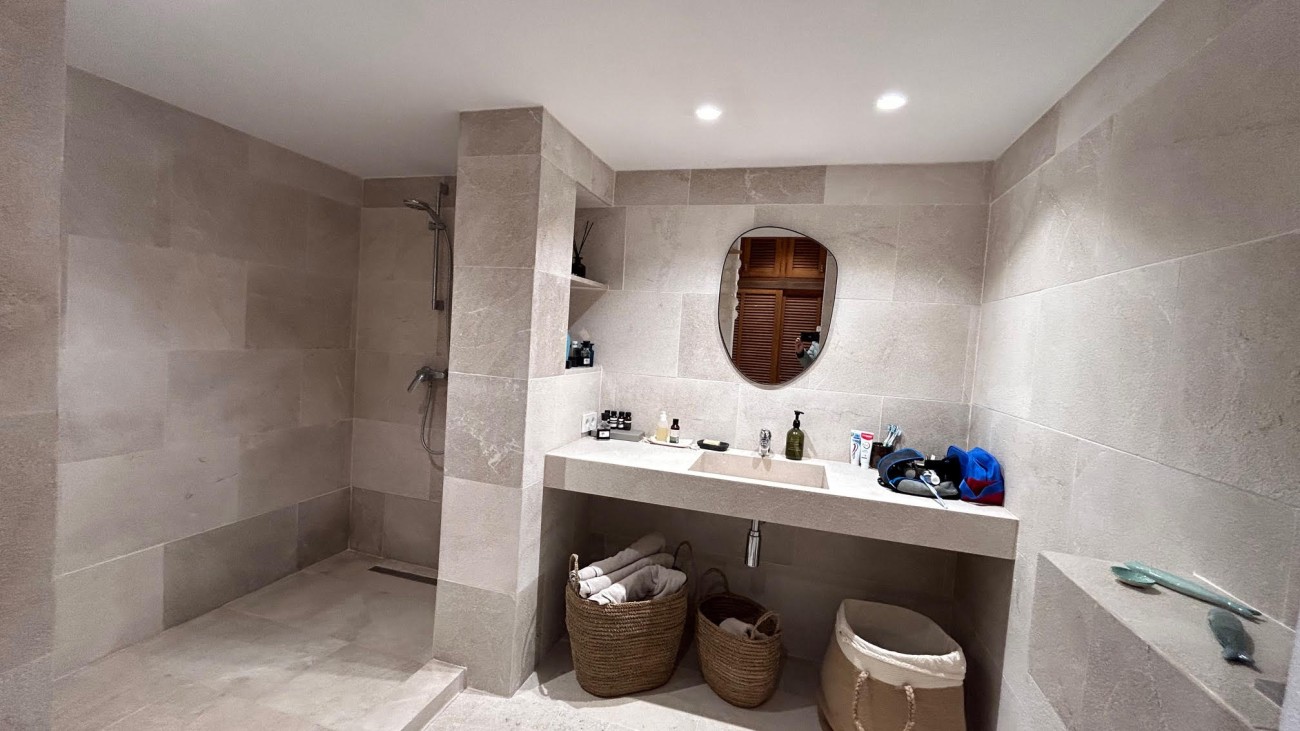 De woning is overal voorzien van airconditioning (koeling en verwarming) en een pelletkachel in de woonkamer voor de koudere maanden. Alle slaapkamers kijken uit op het exterieur, wat extra helderheid toevoegt aan de ruimte. De microcementvloeren geven het appartement een moderne en stijlvolle uitstraling.