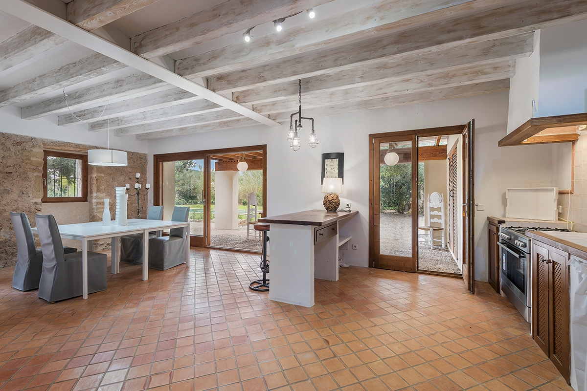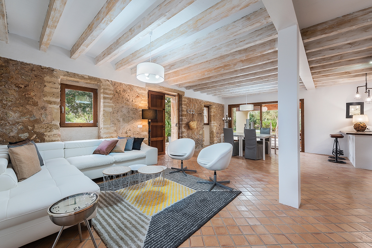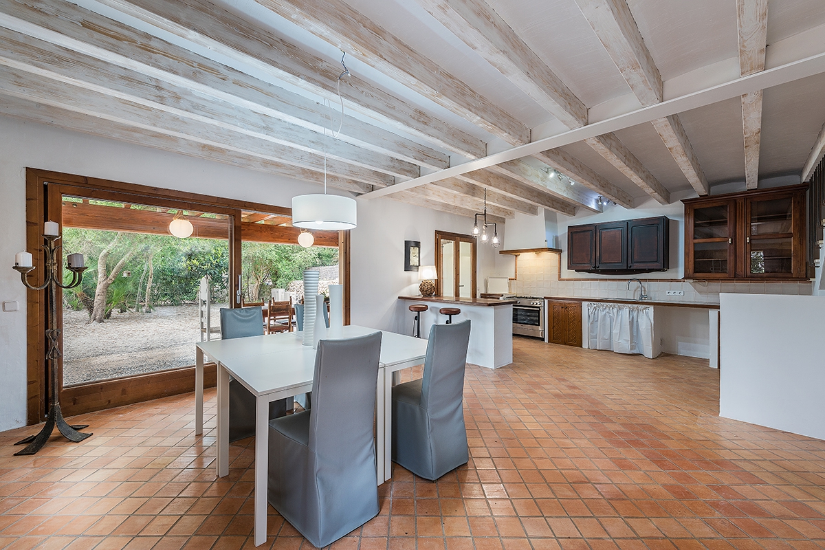 Deze prachtig gerenoveerde vrijstaande villa wordt te koop aangeboden in de exclusieve wijk La Font, op slechts twee minuten rijden van het charmante stadje Pollensa in het noorden van Mallorca. De woning combineert traditionele Mallorcaanse charme met modern comfort en is grondig gerenoveerd met behoud van het oorspronkelijke karakter, waaronder muren met zichtbare stenen, terracotta vloeren en authentieke houten balken.