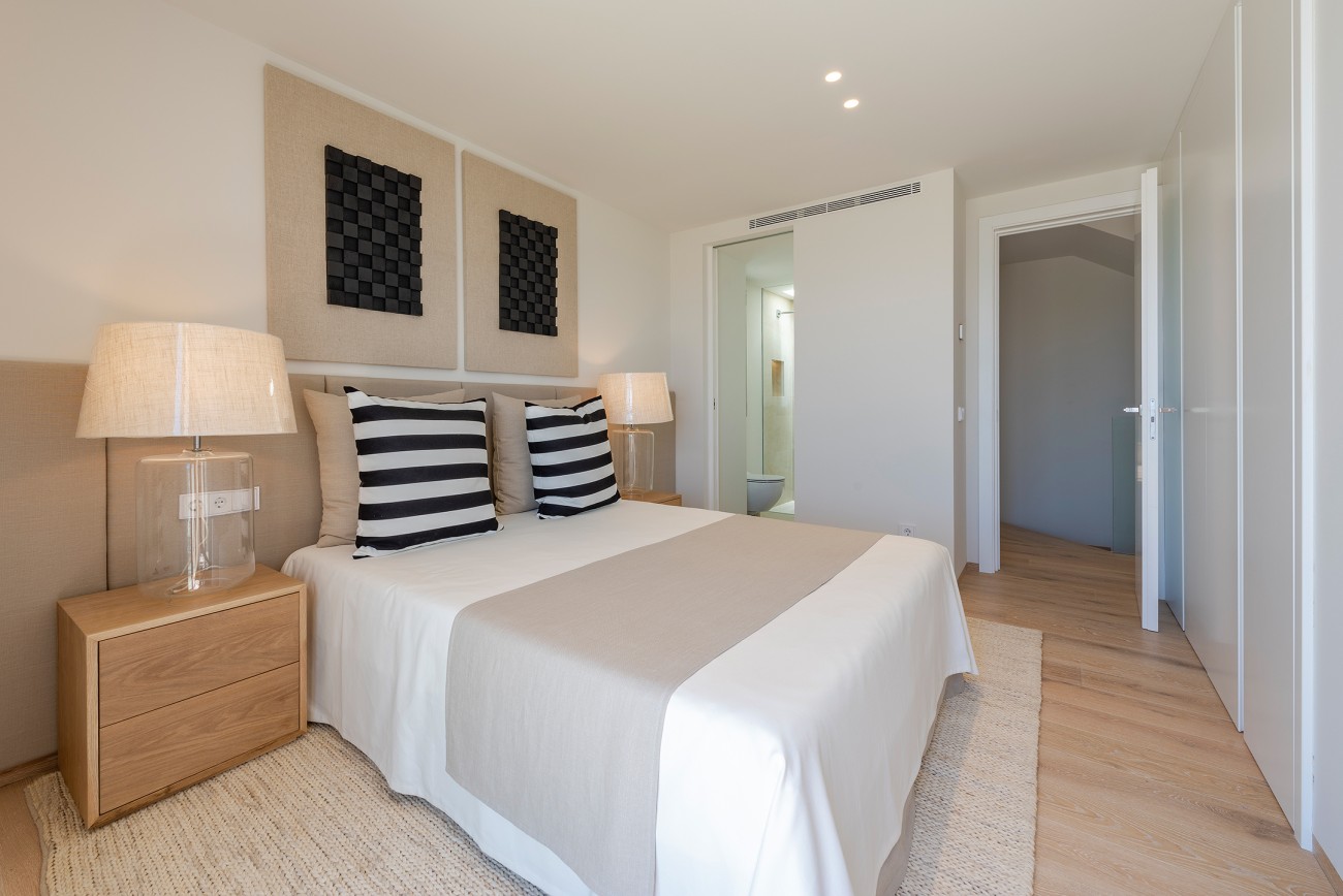 De ouderslaapkamer met eigen badkamer en privéterras ligt op de eerste verdieping, samen met twee gastenslaapkamers die ook een eigen badkamer hebben.