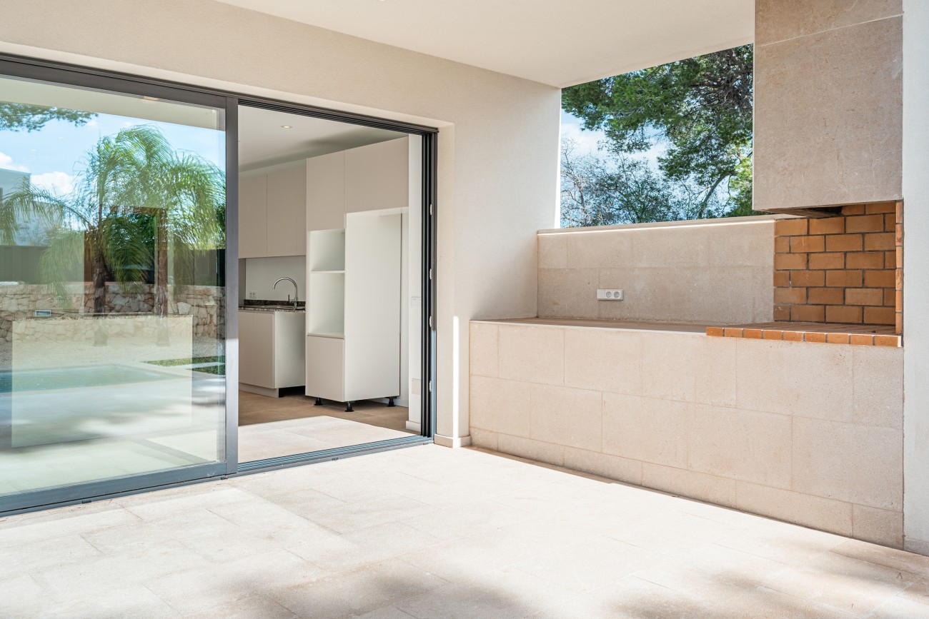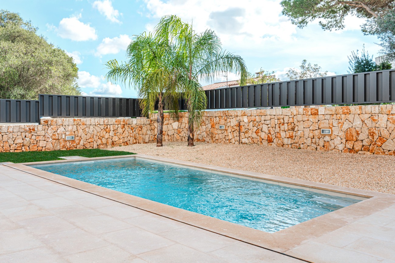 Deze nieuw gebouwde mediterrane villa te koop in Santanyi ligt in een rustige woonwijk op slechts tien minuten lopen van het prachtige strand van S’Amarador en Cala Mondragó. Het pand is voltooid in 2024 en is zorgvuldig ontworpen om te harmoniëren met de natuurlijke omgeving, met sereen uitzicht op de bergen en weelderige pijnbomen. De ligging op het zuiden zorgt voor een overvloed aan natuurlijk licht gedurende de dag, wat een warme en uitnodigende sfeer creëert.