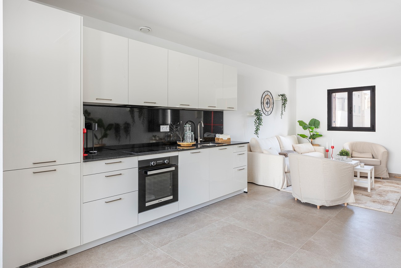 De doordacht ontworpen lay-out omvat drie uitnodigende slaapkamers en twee badkamers, samen met een extra gastentoilet voor extra gemak. Hoogwaardige materialen zijn overal terug te vinden, van de vloer van porcellanato tot de volledig uitgeruste Kuchen keuken.