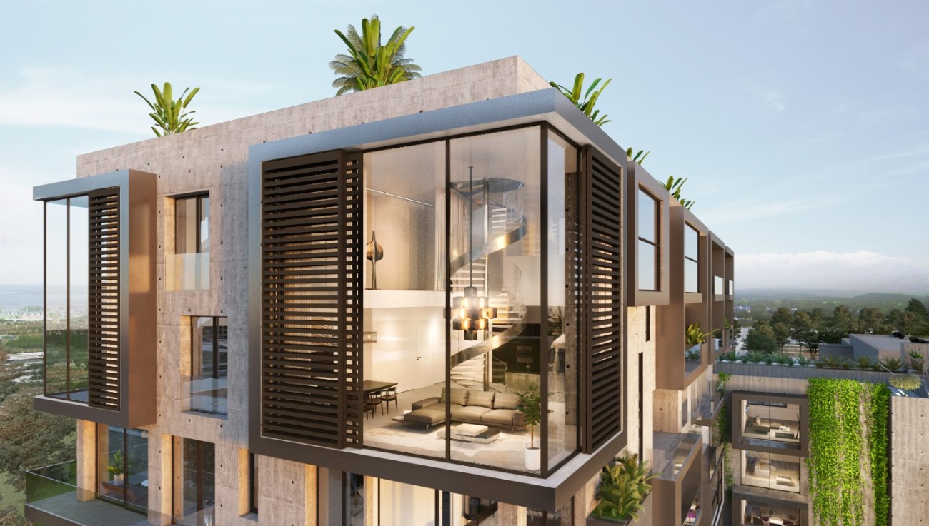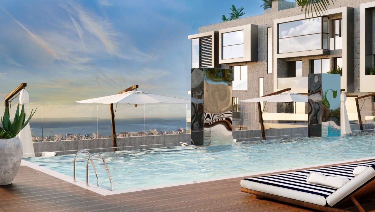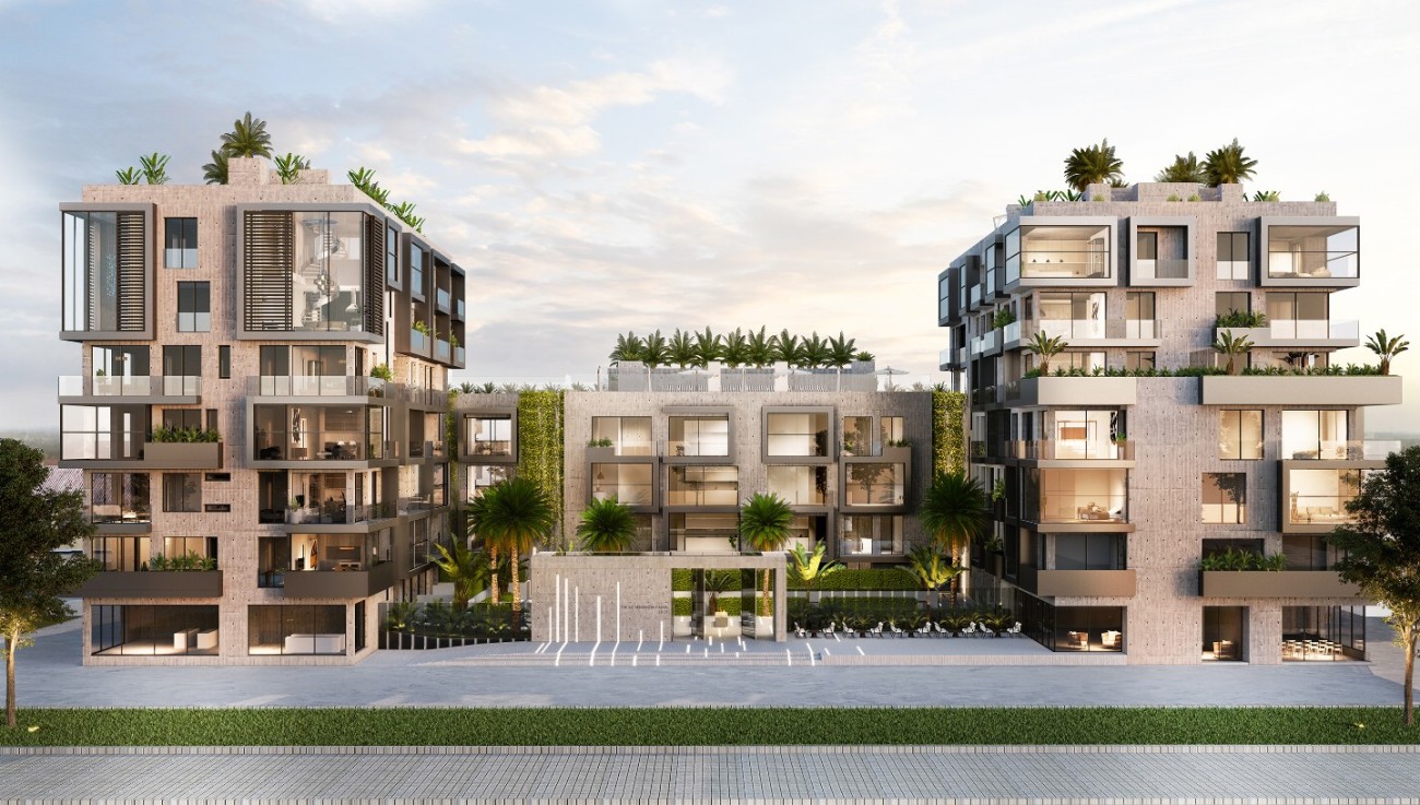 Er zijn in totaal 84 appartementen, verdeeld over 6 verdiepingen, waarvan 10 penthouses met een dakterras met privézwembad of jacuzzi en een prachtig uitzicht op zee. Elke unit heeft 1-4 slaapkamers, 1-3 badkamers (waarvan sommige en-suite), een royale, open woon-/eetkamer met een op maat gemaakte keuken met MIELE apparatuur, vloerverwarming en centrale airconditioning.