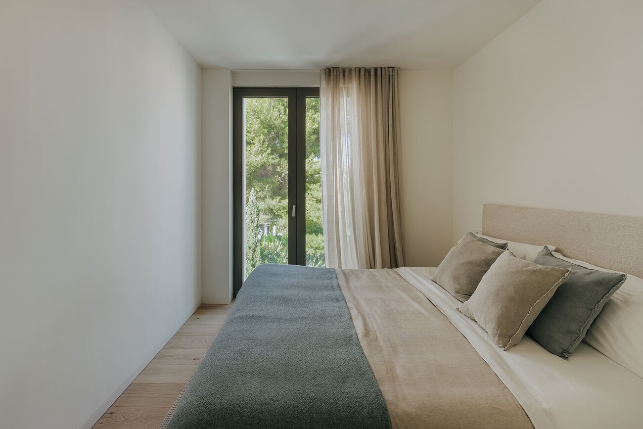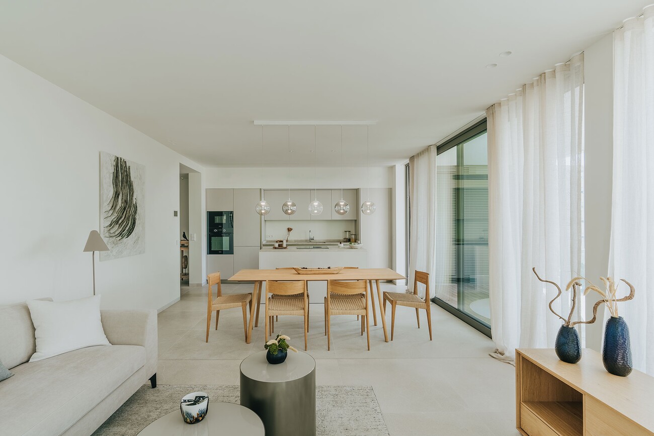 Het appartement heeft 2 ruime slaapkamers en 2 elegante badkamers (waarvan een en suite), aangevuld met hoogwaardige afwerkingen zoals grijze Zarzi vloeren en ramen met dubbele beglazing. De open woonkamer sluit naadloos aan op een volledig uitgeruste Espacio keuken met Balay apparatuur, terwijl vloerverwarming en airconditioning zorgen voor comfort het hele jaar door.