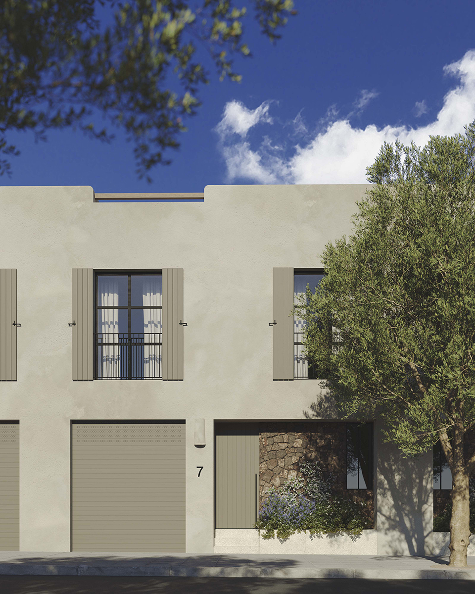 Elk huis dat te koop is, is verdeeld over twee verdiepingen en beschikt over royale buitenruimtes, waaronder terrassen en een solarium op het dak met prachtig uitzicht op zee. De meeste woningen hebben een privétuin met zwembad en garage. Elke woning heeft drie tweepersoonsslaapkamers, drie complete badkamers en een gastentoilet.