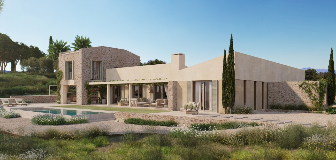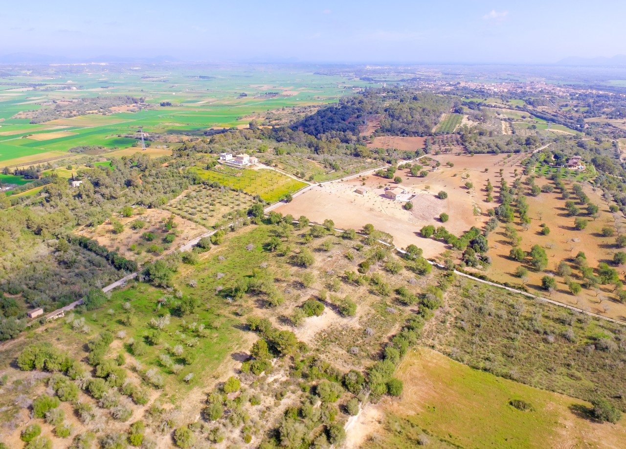 Dit prachtige landgoed te koop in Sineu ligt in een rustige en privéomgeving midden in de natuur en biedt adembenemend uitzicht op de nabijgelegen bergen. Het pand ligt op een uitgestrekt perceel van 16.651m² en is momenteel in aanbouw, met oplevering gepland voor april 2026.