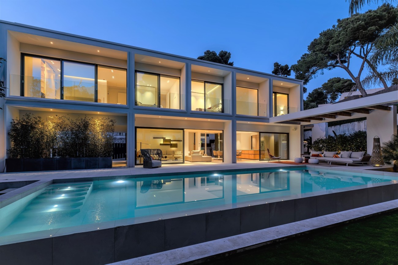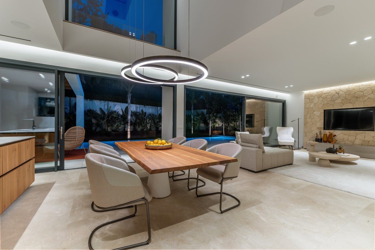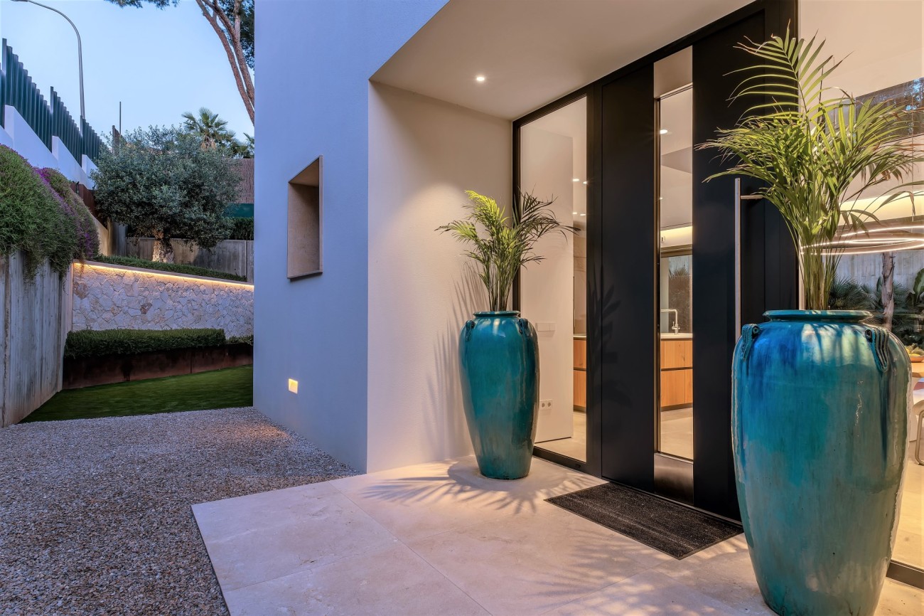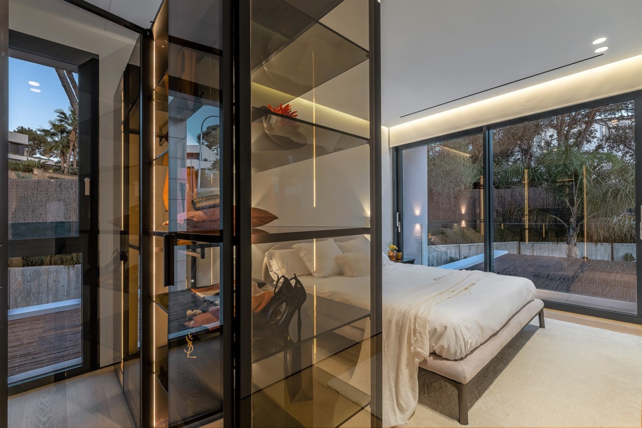 Deze stijlvolle, nieuw gebouwde villa wordt te koop aangeboden in een bevoorrechte wijk van Bendinat; het beschikt over ultramoderne technologie en design, overal luxe elementen, een fantastische locatie op loopafstand van het strand , winkels en restaurants, en je bereikt de golfbaan, de haven van Puerto Portals en Portals Nous in slechts 5 minuten met de auto.