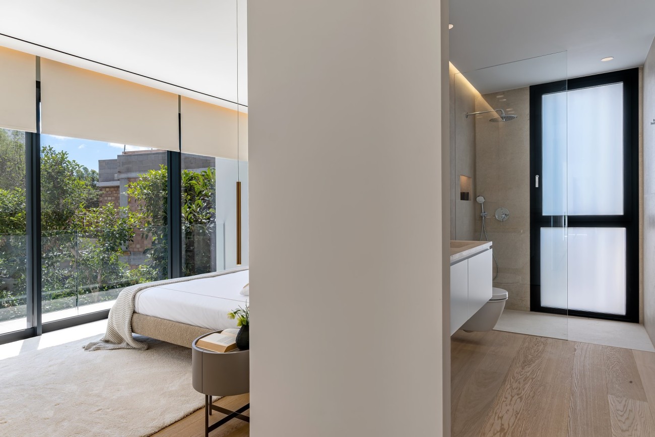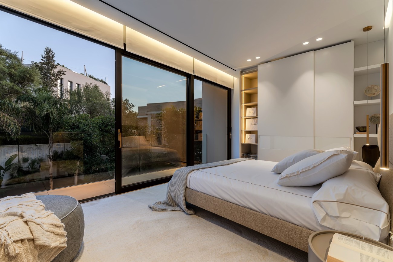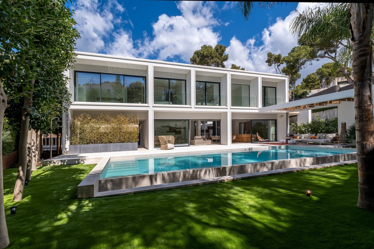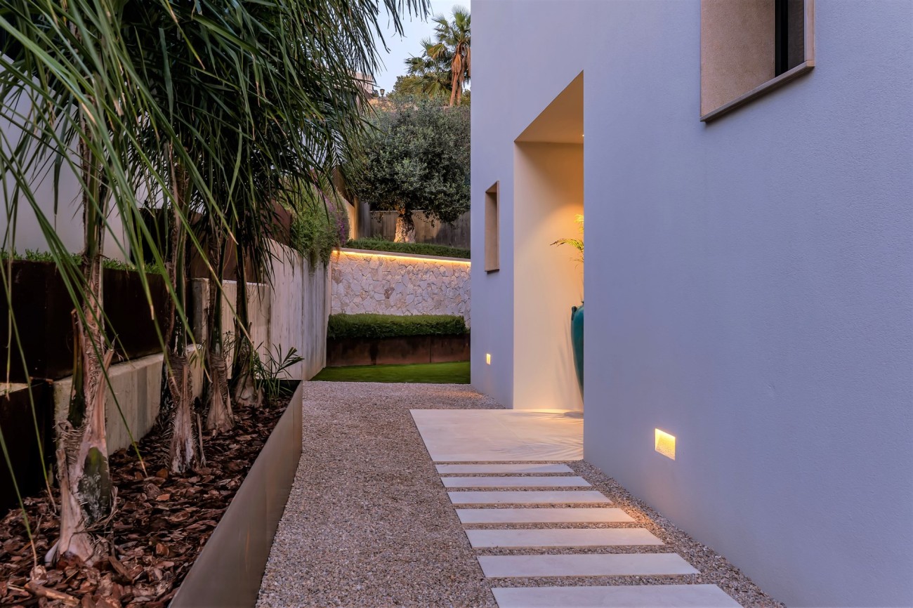 Deze stijlvolle, nieuw gebouwde villa wordt te koop aangeboden in een bevoorrechte wijk van Bendinat; het beschikt over ultramoderne technologie en design, overal luxe elementen, een fantastische locatie op loopafstand van het strand , winkels en restaurants, en je bereikt de golfbaan, de haven van Puerto Portals en Portals Nous in slechts 5 minuten met de auto.