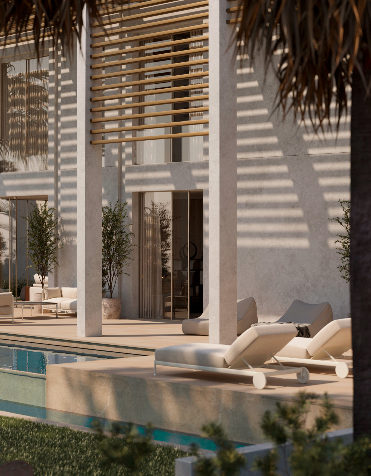 De open indeling van de villa, verdeeld over twee verdiepingen en een kelderverdieping, versterkt het gevoel van ruimte en licht en verbindt naadloos de binnen- en buitenruimten.