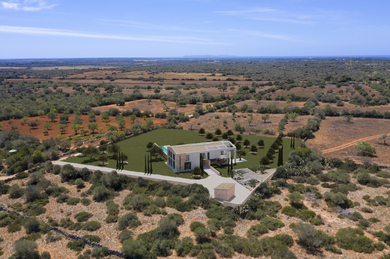 Dit huis te koop op Mallorca is een uitzonderlijk mediterraan finca-project gelegen in het Santanyí-gebied, met gemakkelijke toegang en volledige privacy. Het huis is momenteel voor ongeveer 40% afgebouwd, met de volledige structuur van de hoofdwoning en het zwembad al voltooid, zodat de toekomstige eigenaar het project naar eigen wens kan afronden.