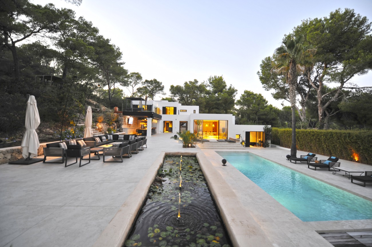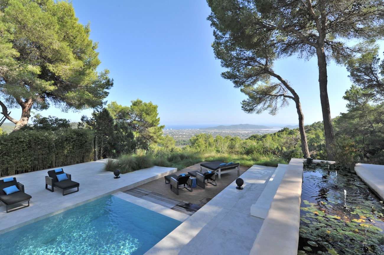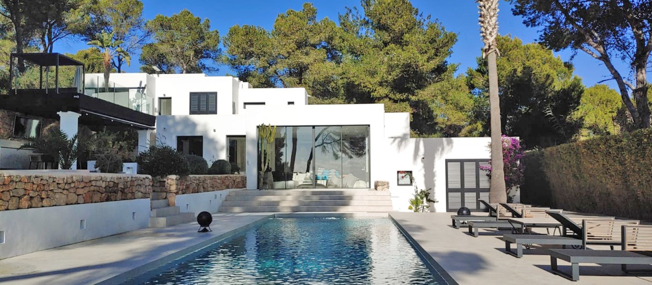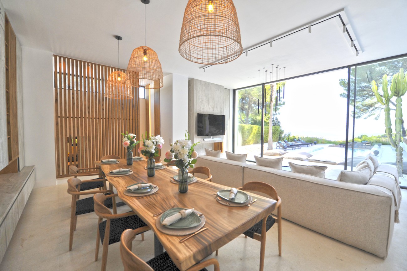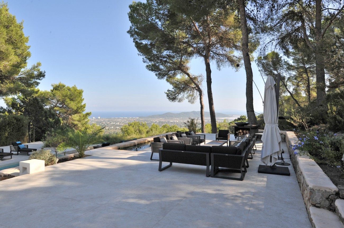 Deze prachtig gerenoveerde villa biedt een adembenemend uitzicht op zee en de Salinas, met Formentera zichtbaar op heldere dagen. De villa ligt op een perceel van 5.034 m² en bestaat uit een hoofdhuis en een bijgebouw.