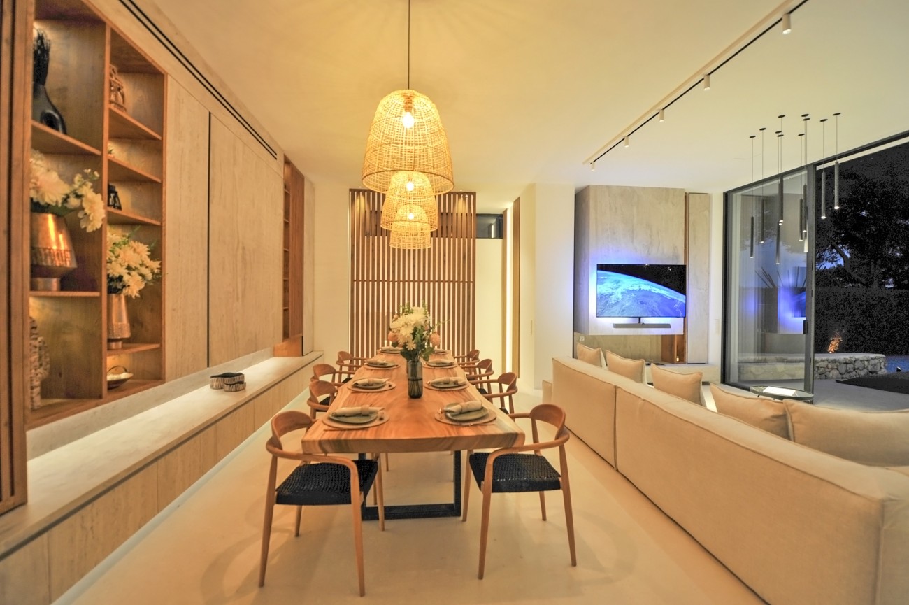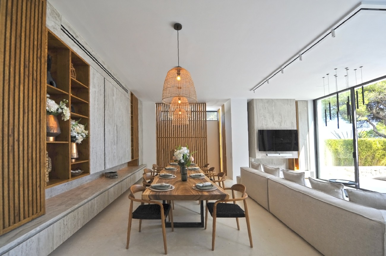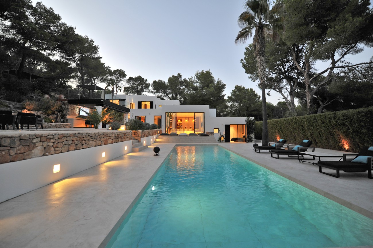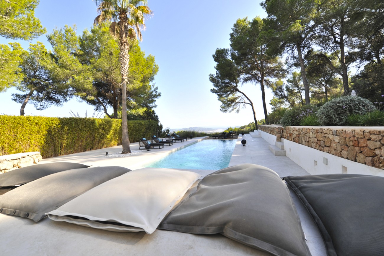 Deze prachtig gerenoveerde villa biedt een adembenemend uitzicht op zee en de Salinas, met Formentera zichtbaar op heldere dagen. De villa ligt op een perceel van 5.034 m² en bestaat uit een hoofdhuis en een bijgebouw.