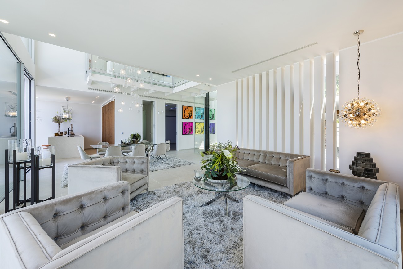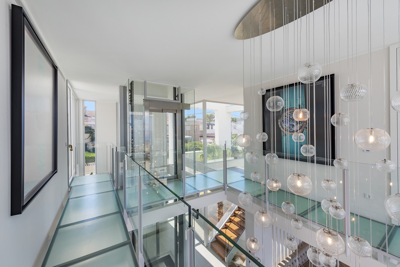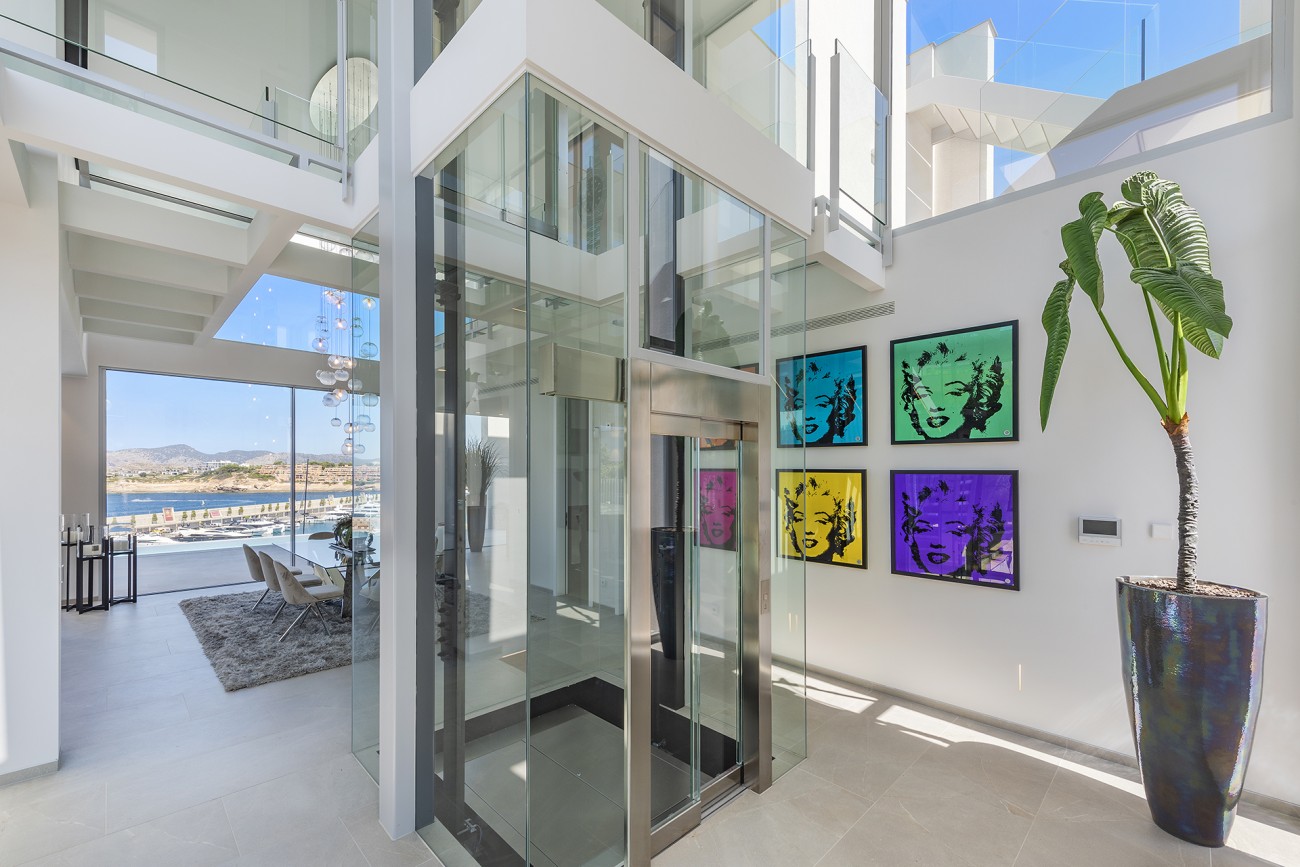 Daarnaast heeft de villa omgekeerde airconditioning, vloerverwarming, een glazen lift, een dubbele garage en een enorm dakterras van ongeveer 120m2 dat perfect is om gasten te ontvangen.