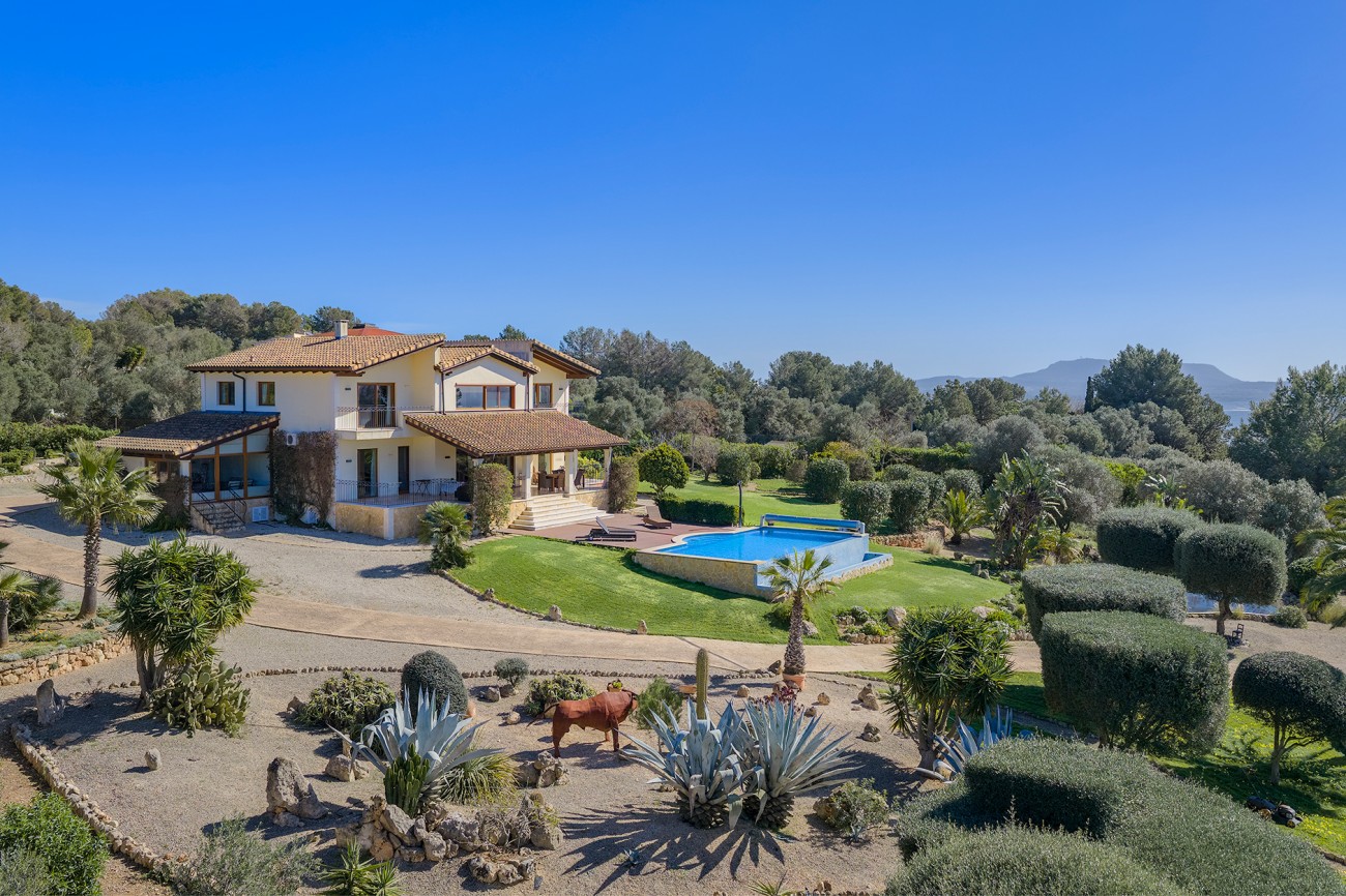 Deze spectaculaire villa te koop in Puntiró, Mallorca, ligt in een van de meest prestigieuze en rustige locaties van het gebied en biedt panoramisch uitzicht op zee, een zuidwestelijke oriëntatie en totale privacy. Deze luxe mediterrane villa ligt op een uitgestrekt perceel van bijna 8.000 m² en combineert tijdloze architectuur met modern comfort, waardoor het ideaal is als permanente verblijfplaats of luxe tweede huis.