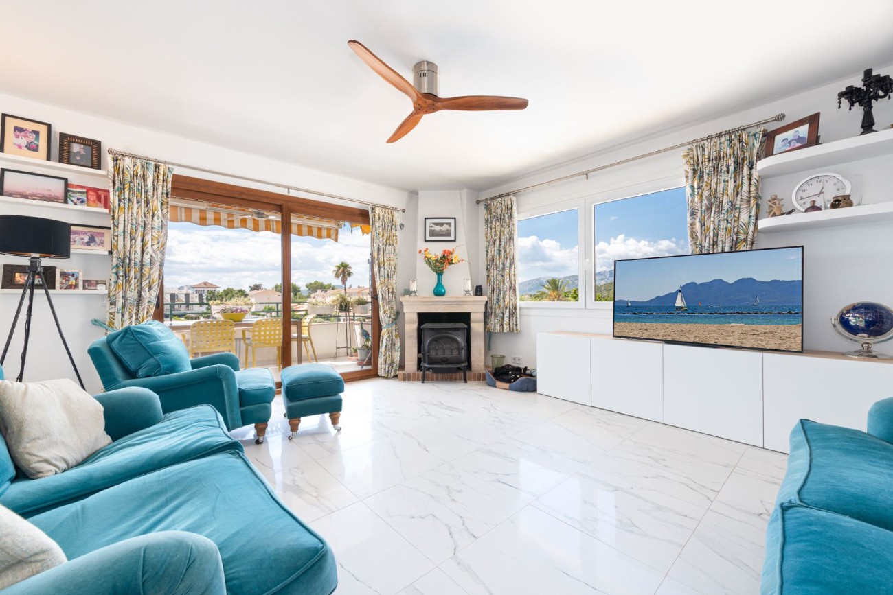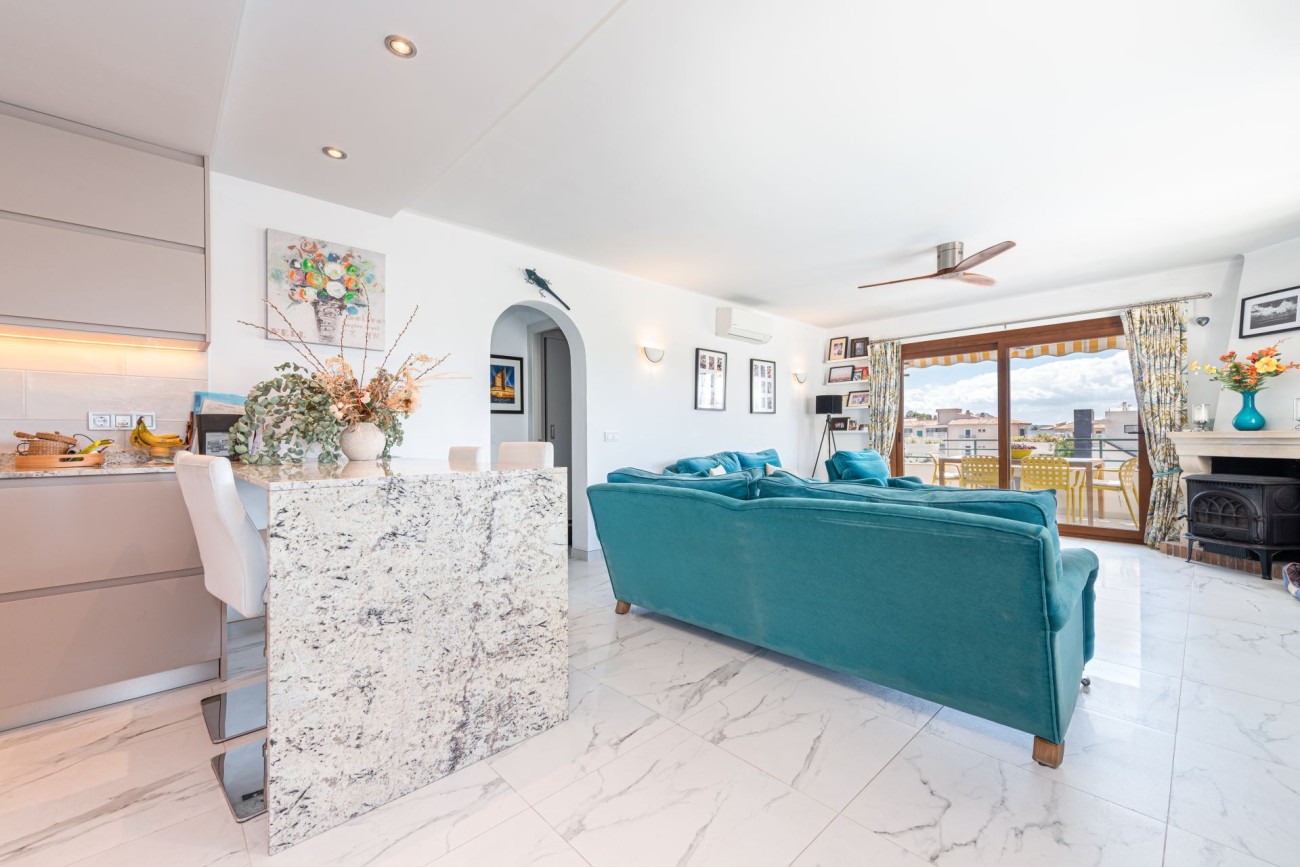 We bieden dit stijlvolle hoekpenthouse exclusief te koop aan in Puerto Pollensa, met een overvloed aan daglicht en een gezellige sfeer. Smaakvol ingericht en doordacht ontworpen, combineert dit penthouse het moderne leven met mediterrane charme, waardoor het een ideale permanente verblijfplaats of vakantiehuis is in een van Mallorca’s meest gewilde kustplaatsen.