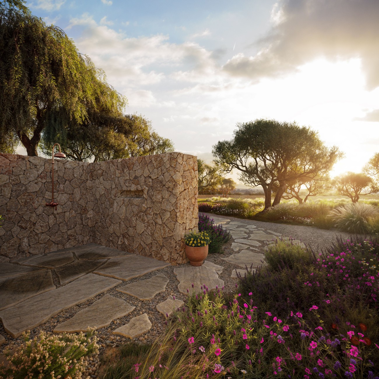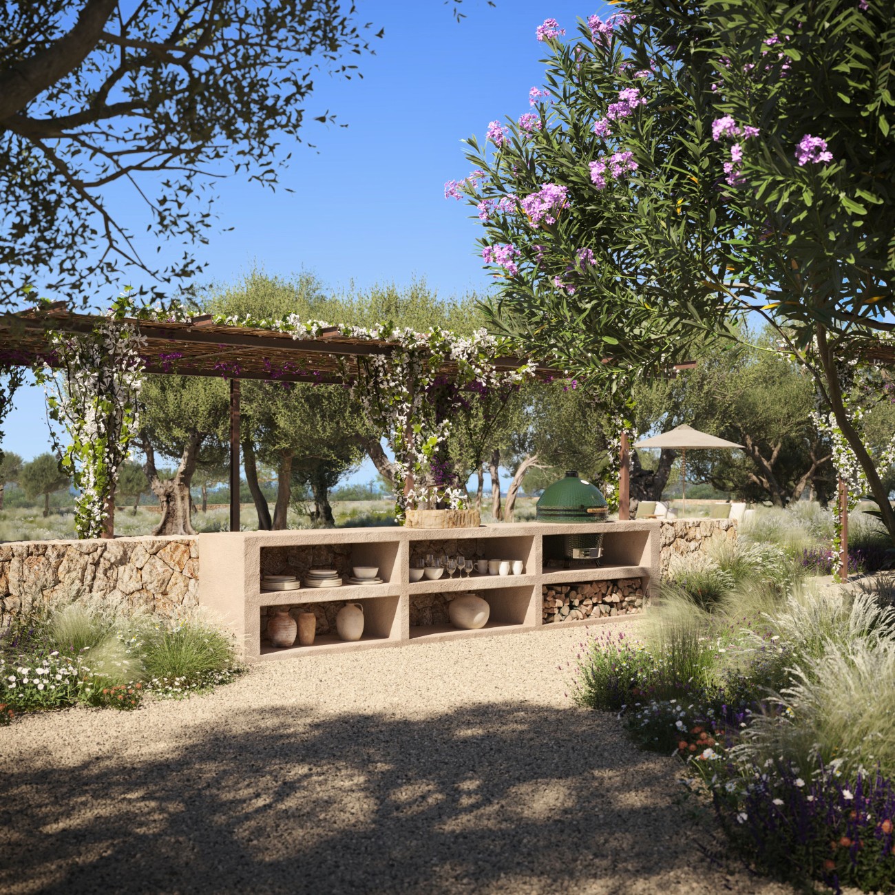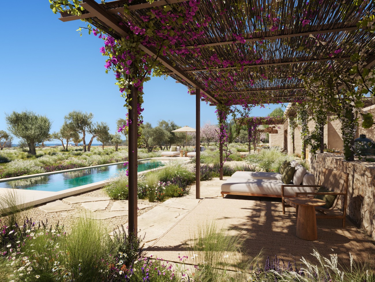 Het bijgebouw is ontworpen met een slaapkamer met en-suite badkamer en een aparte woonkamer die uitkomt op de tuin en het zwembad.