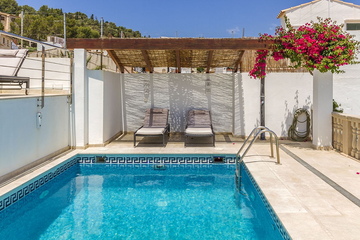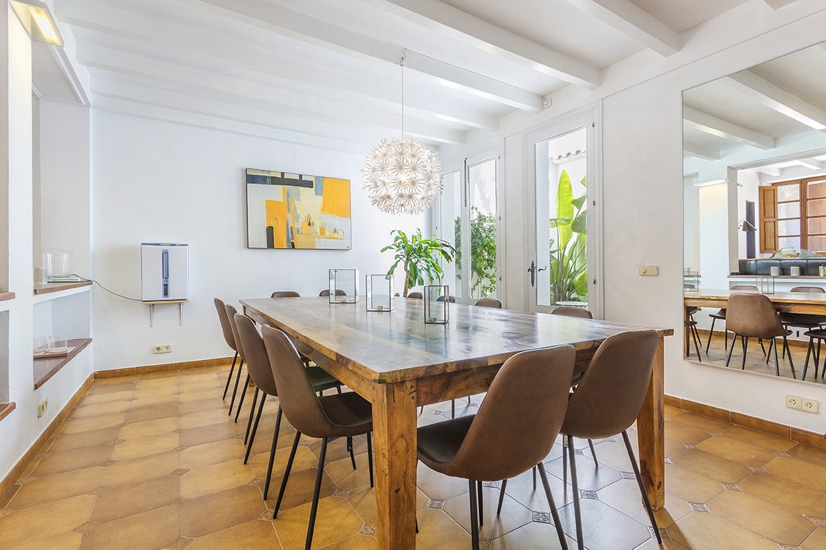 Dit indrukwekkende dorpshuis zit boordevol speciale kenmerken waar Mallorcaanse dorpshuizen het meest geliefd om zijn, zoals plafonds met houten balken, een onmisbaar zwembad, een privégarage en zelfs een etenslift die het dakterras gemakkelijk bedient vanuit de keuken.