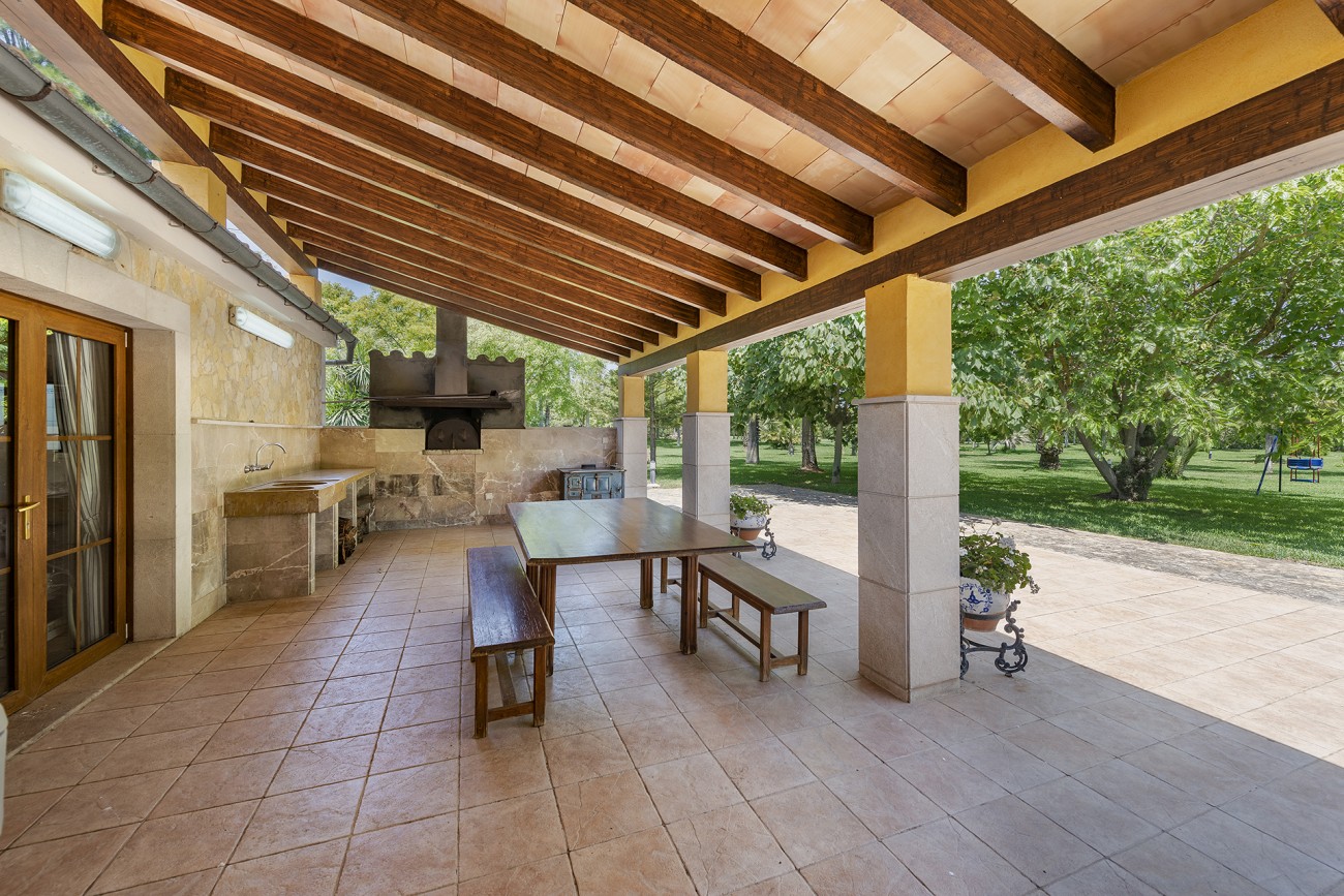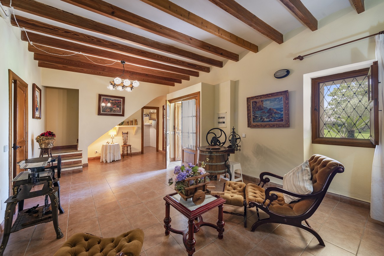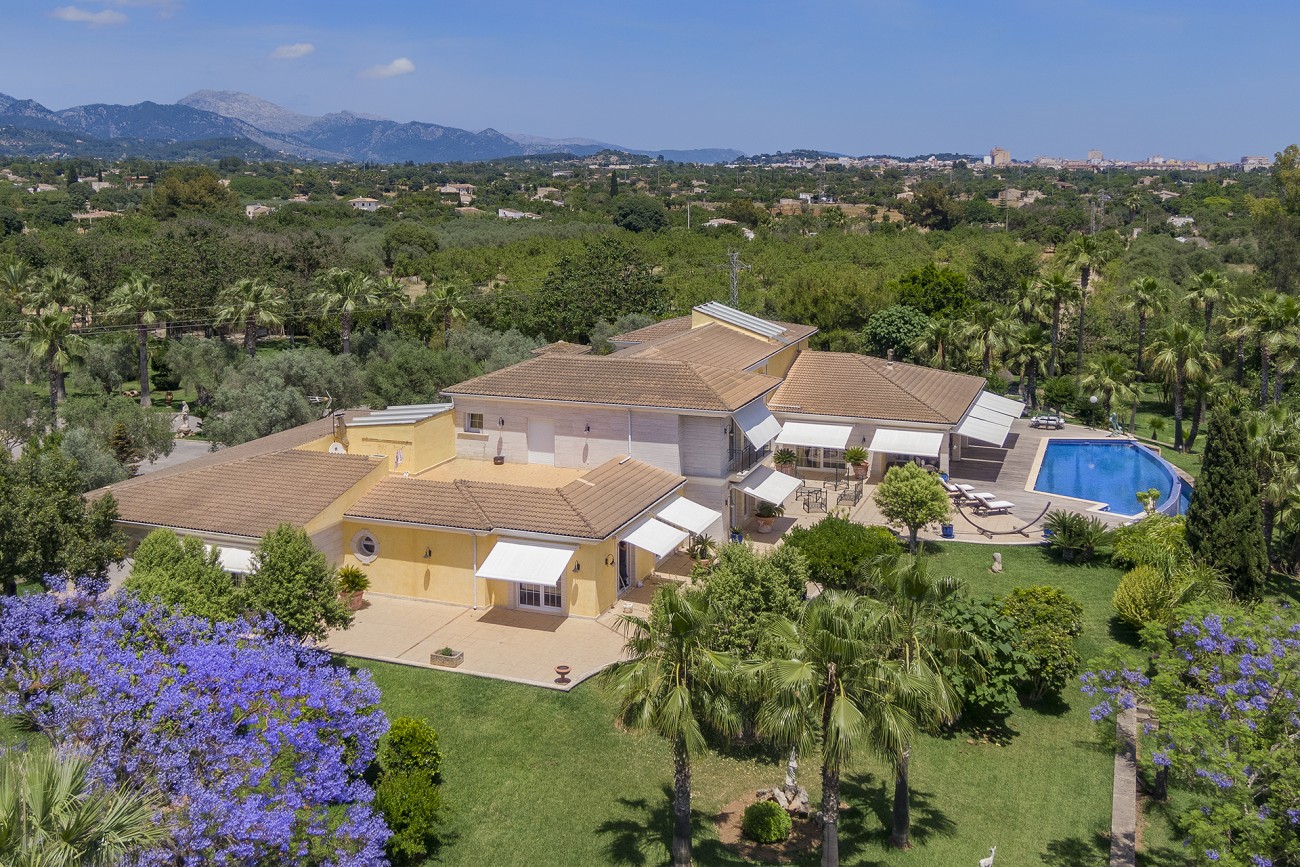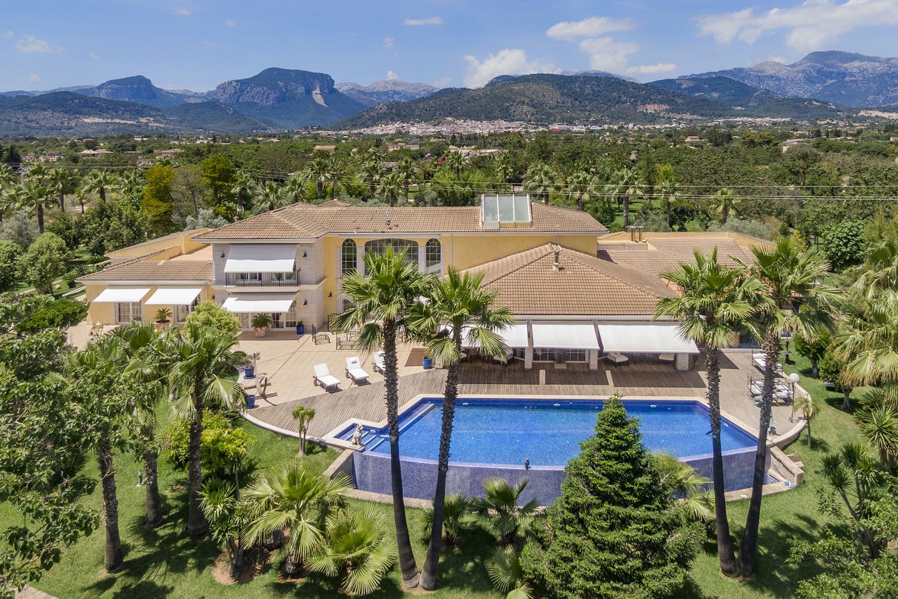 Dit prachtige landgoed, te koop in de buurt van Binissalem, ligt op een perceel van ongeveer 87.000 m2, met luxe faciliteiten, waaronder een groot overloopzwembad, een verwarmd binnenzwembad, sauna, fitnessruimte, gastenverblijf, uitgebreide aangelegde tuinen met twee meren, fruitbomen en ruimte voor paarden. Het ligt op een privélocatie, op slechts vijf minuten van de stad Binissalem, beroemd om zijn wijnproductie.