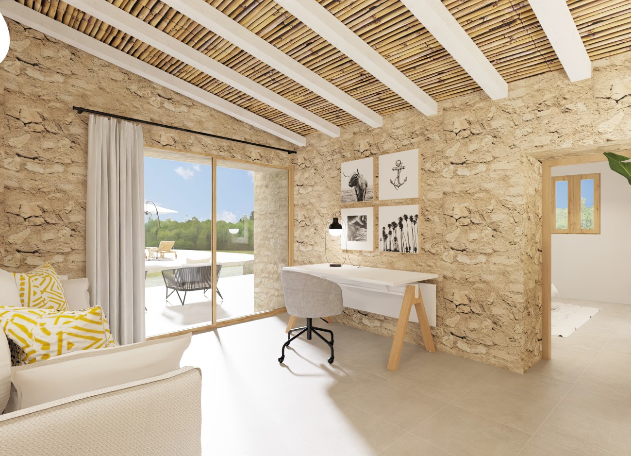 Deze villa ligt in de prestigieuze regio Algaida en biedt een oase van privacy, terwijl het gunstig gelegen is op slechts 20 minuten van het vliegveld en enkele van de mooiste stranden van het eiland. Het basisproject, de uitvoering en alle benodigde vergunningen zijn inbegrepen in het pakket.