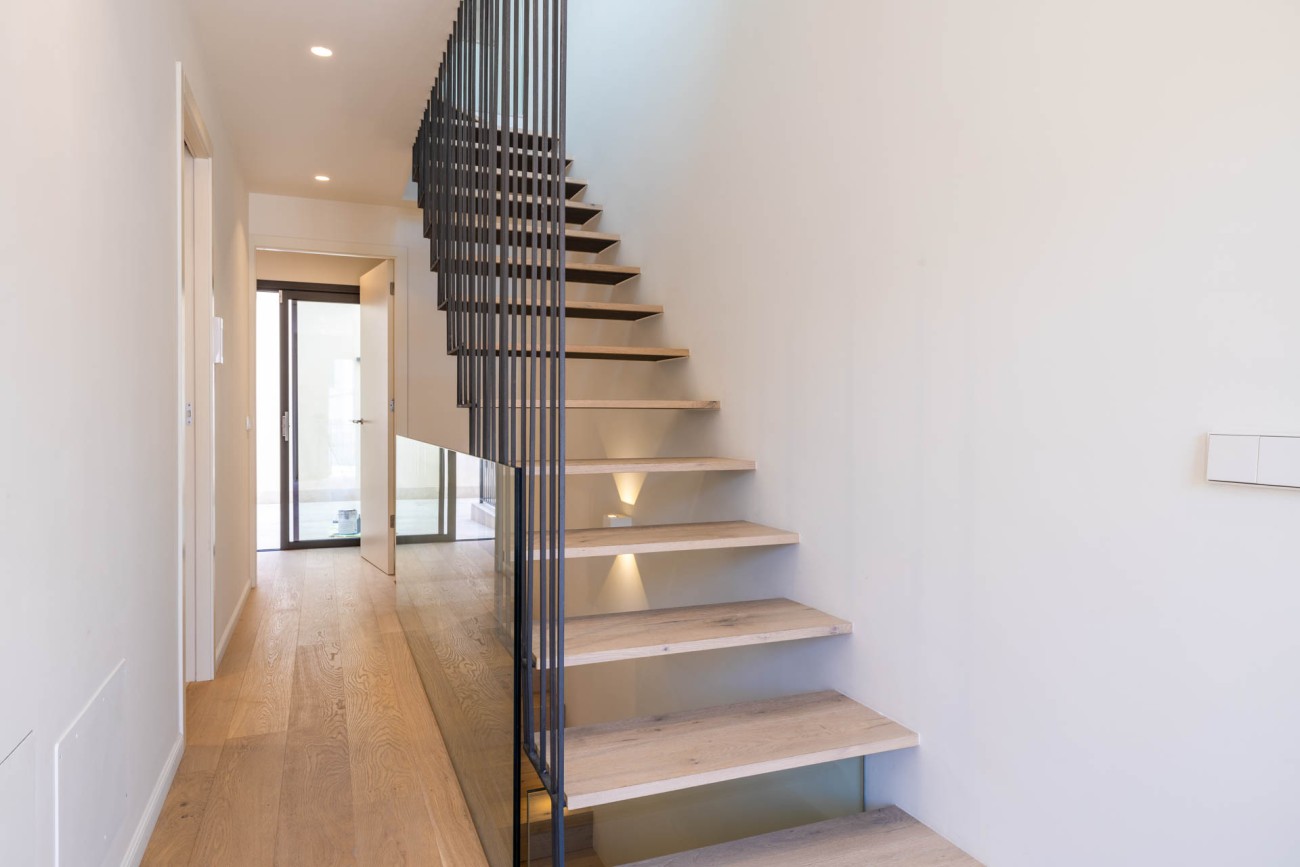 De huizen zijn verdeeld over drie verdiepingen en beschikken over ruime terrassen, een weelderige mediterrane tuin en een prachtige lounge op het dak met een privézwembad, waardoor je een spectaculair uitzicht hebt over de baai in een rustige en ontspannen omgeving. Het ontwerp combineert op meesterlijke wijze moderne architectuur met authentieke mediterrane charme, waardoor een verfijnde en harmonieuze leefruimte ontstaat.