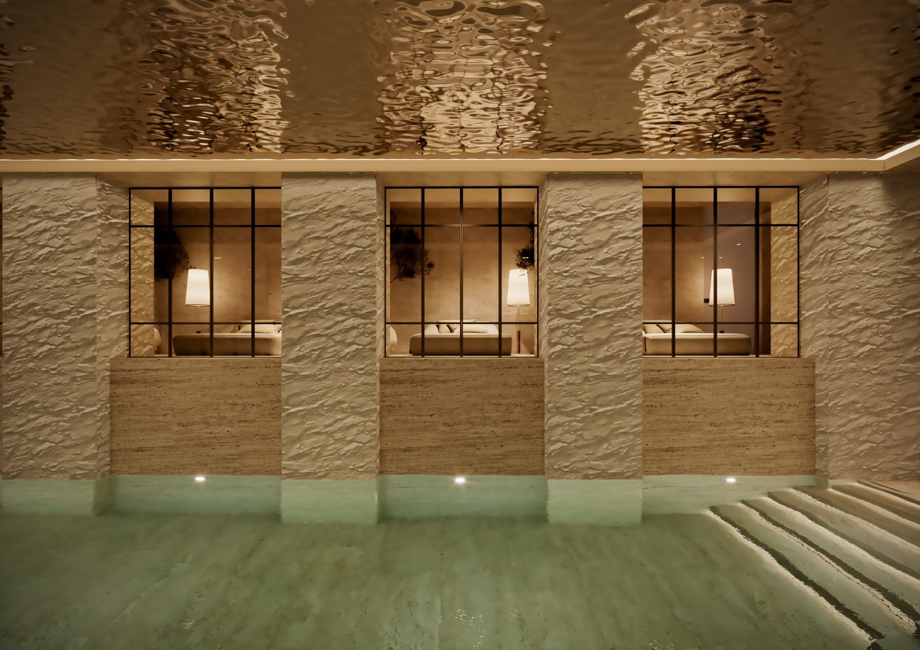 Binnen het project vind je 550 vierkante meter aan voorzieningen die zijn ontworpen om de geest te verfrissen, het lichaam te verjongen en de geest te verheffen. Geniet van het zwembad, solarium en spa met Japanse warmwaterbronnen, cryogene therapiekamer, stoombad, sauna, ijsbad, chill-outruimte, kleedkamers, binnenzwembad en jacuzzi, allemaal gelegen op de halve kelderverdieping.